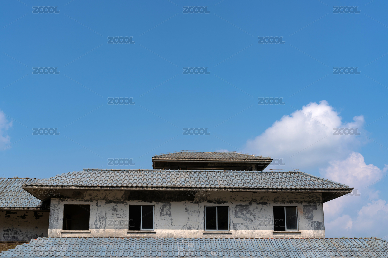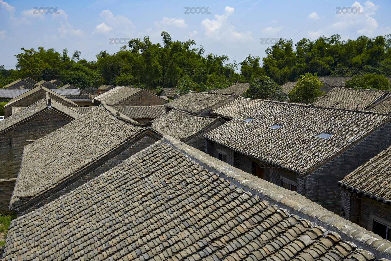 青色砖瓦房顶