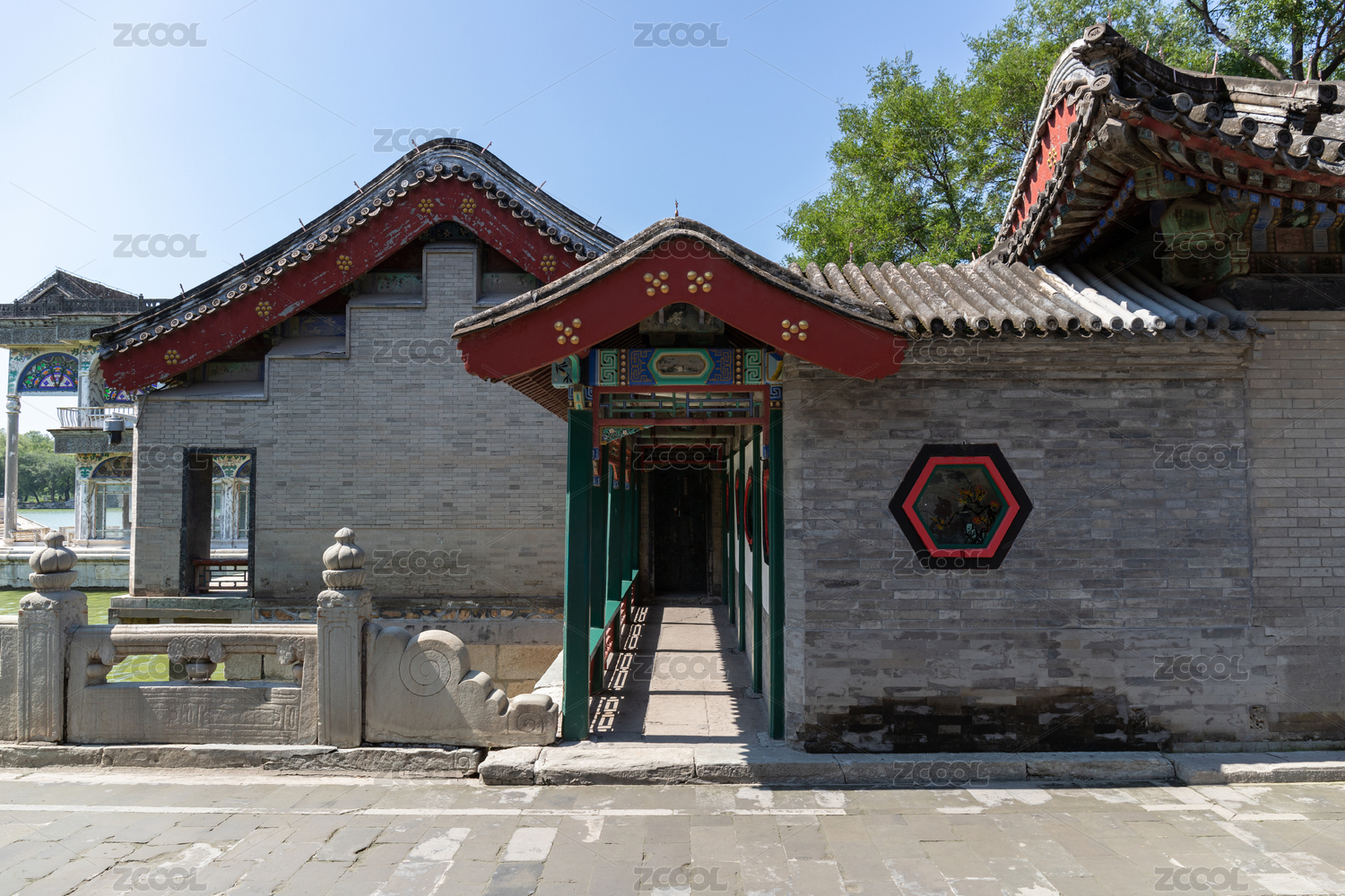 中国北京颐和园灰砖瓦房