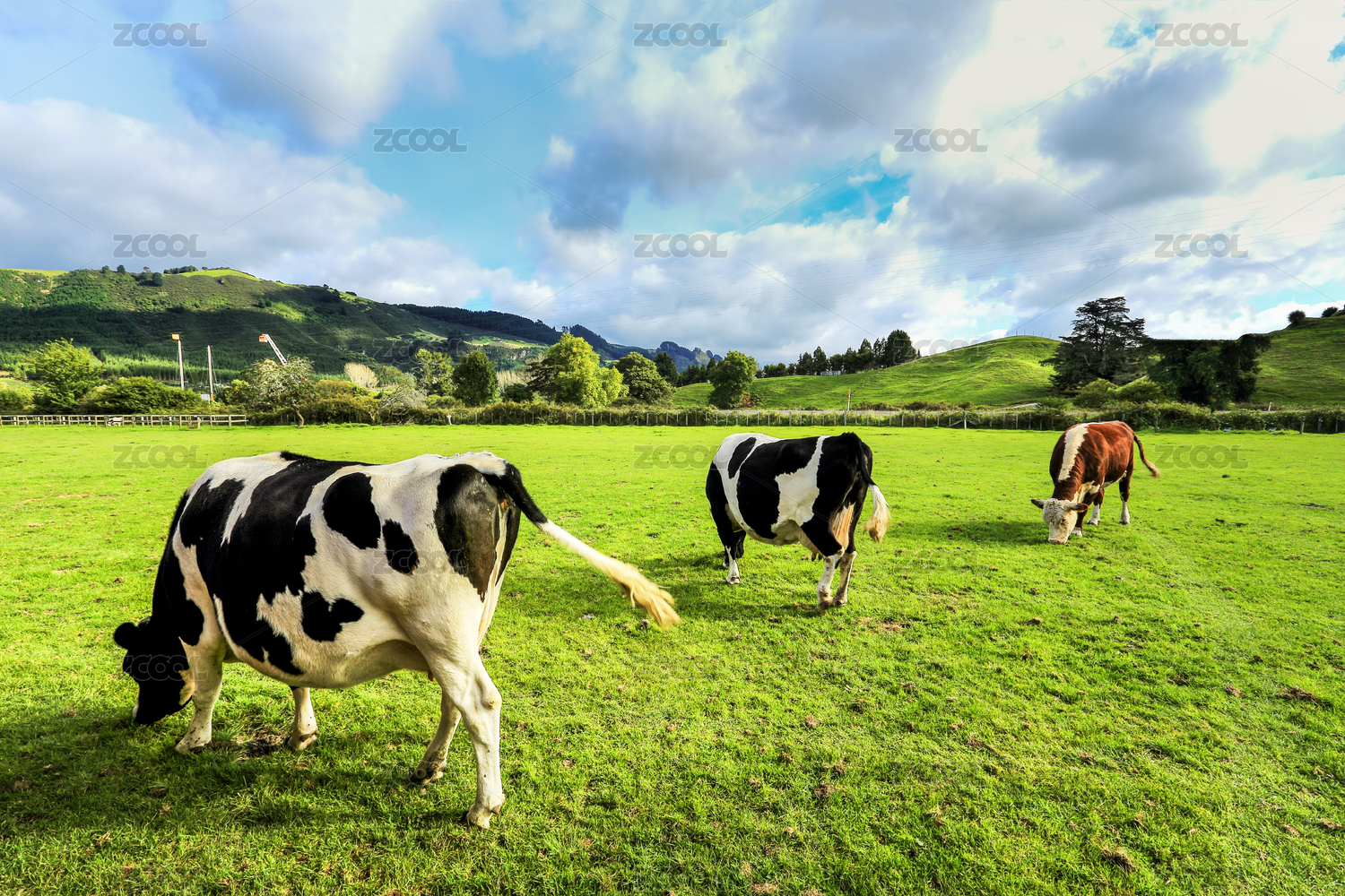 新西兰爱歌顿皇家牧场里正在草地上吃草的奶牛