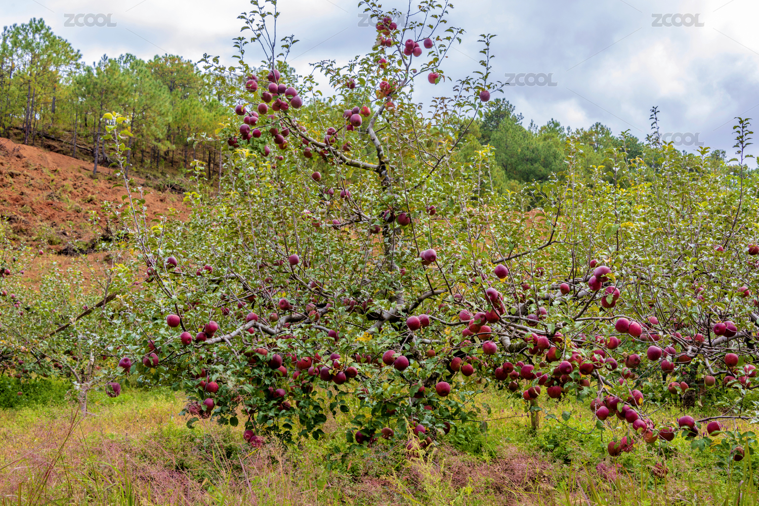 云南大山里的结满成果的苹果树