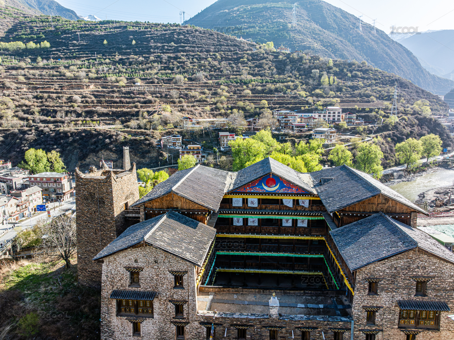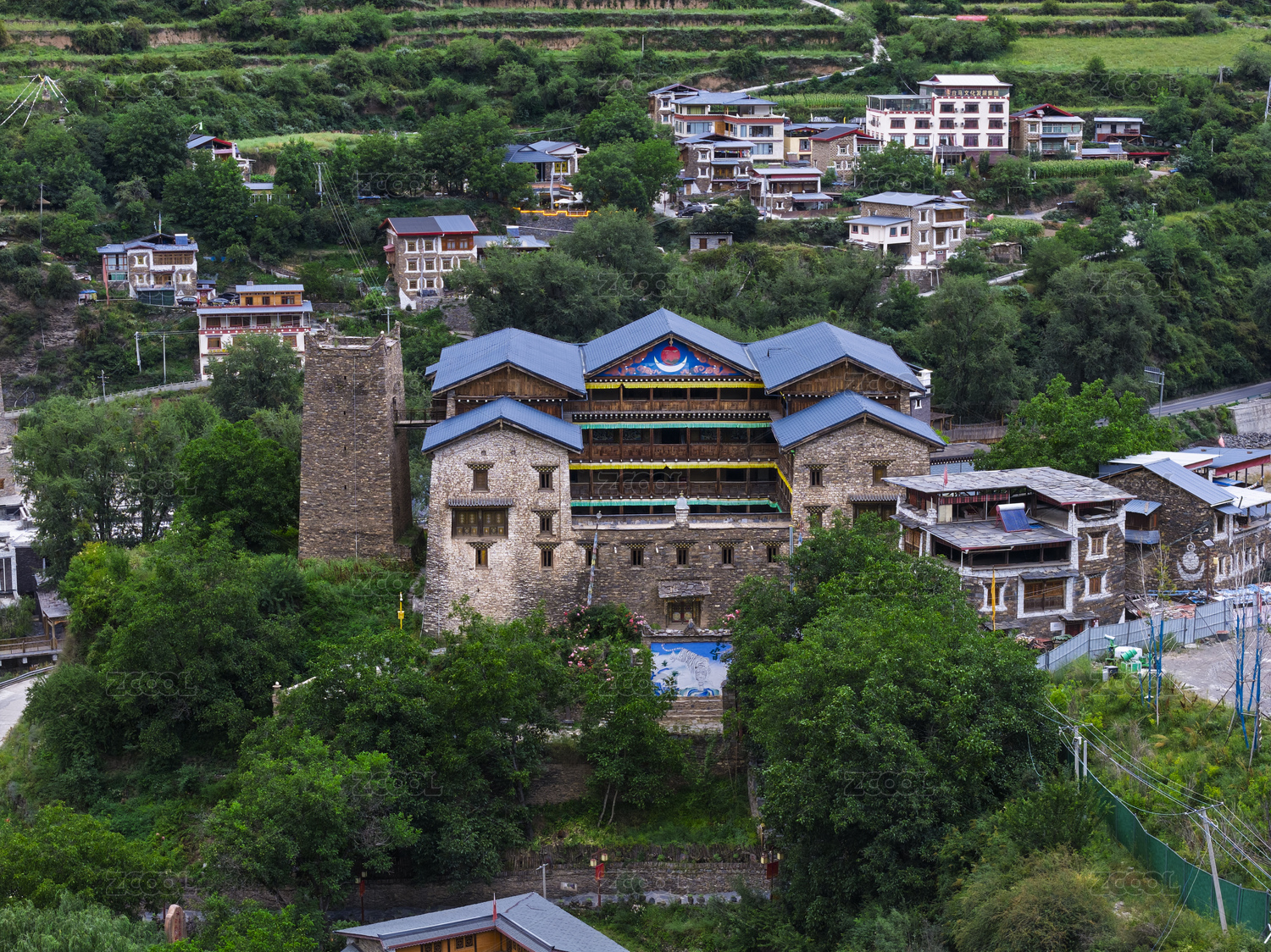 马尔康市卓克基土司官寨和西索民居航拍