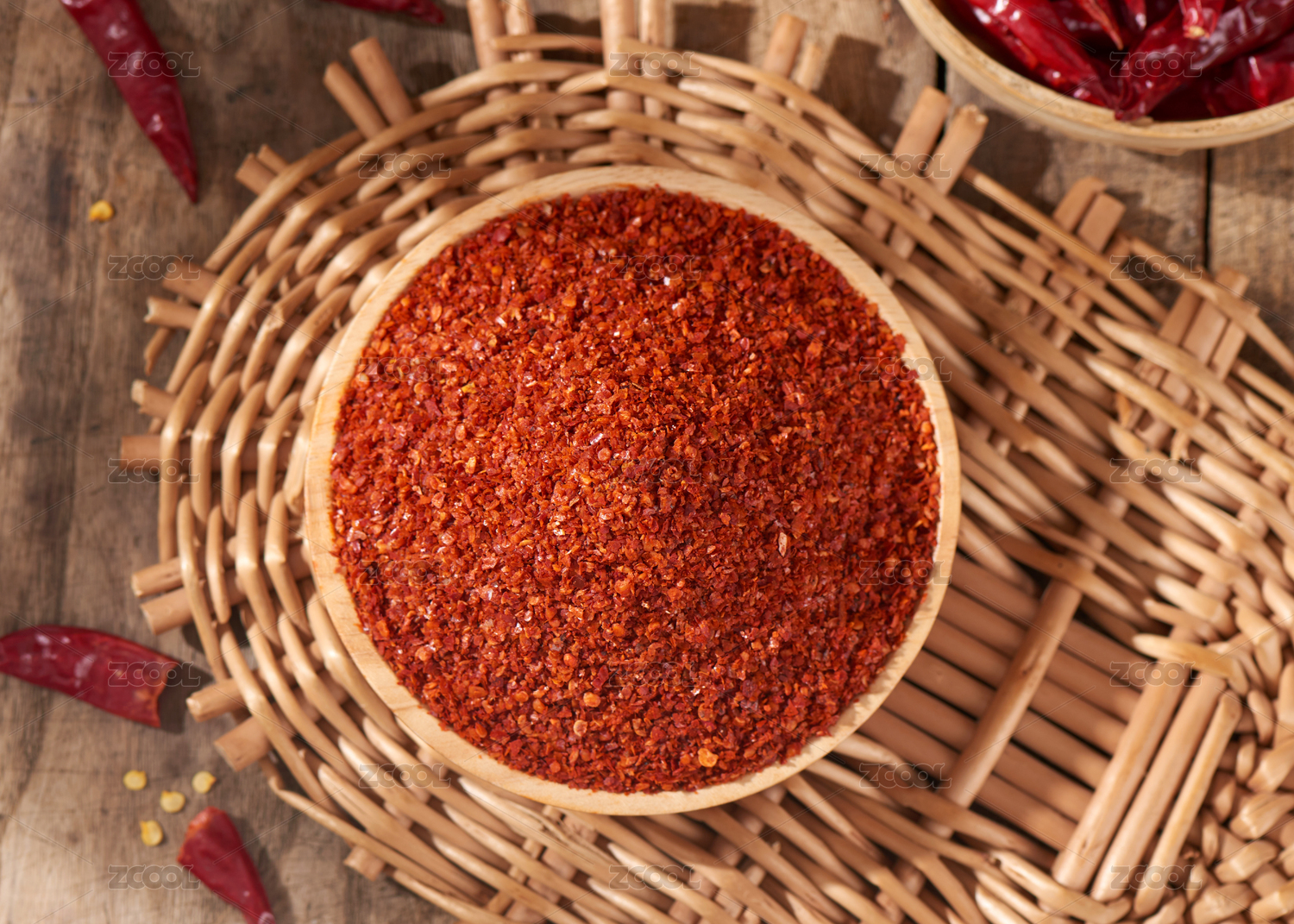桌面上的盘子里的美味可口的辣椒粉