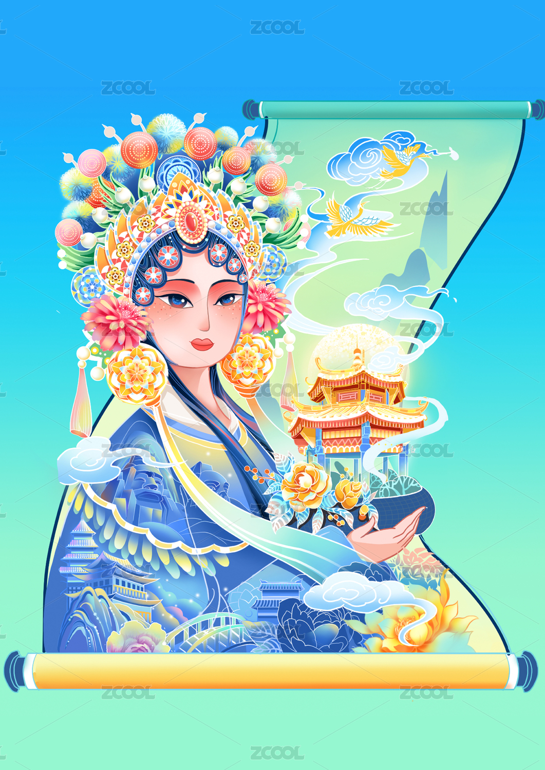 旦角唱戏曲京剧豫剧非物质文化遗产海报