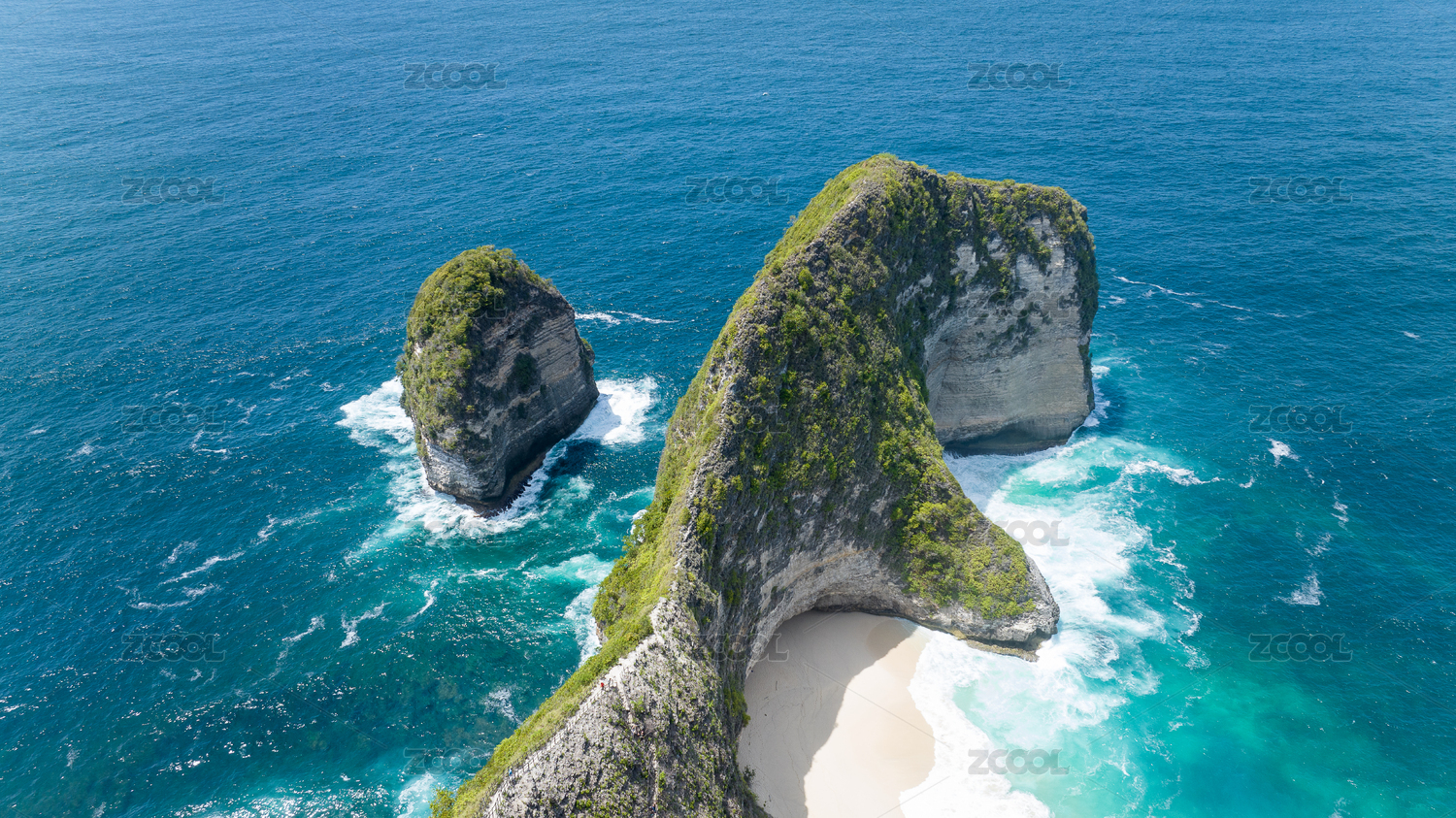 鸟瞰印尼努萨佩尼达岛精灵坠崖和绿松石海洋