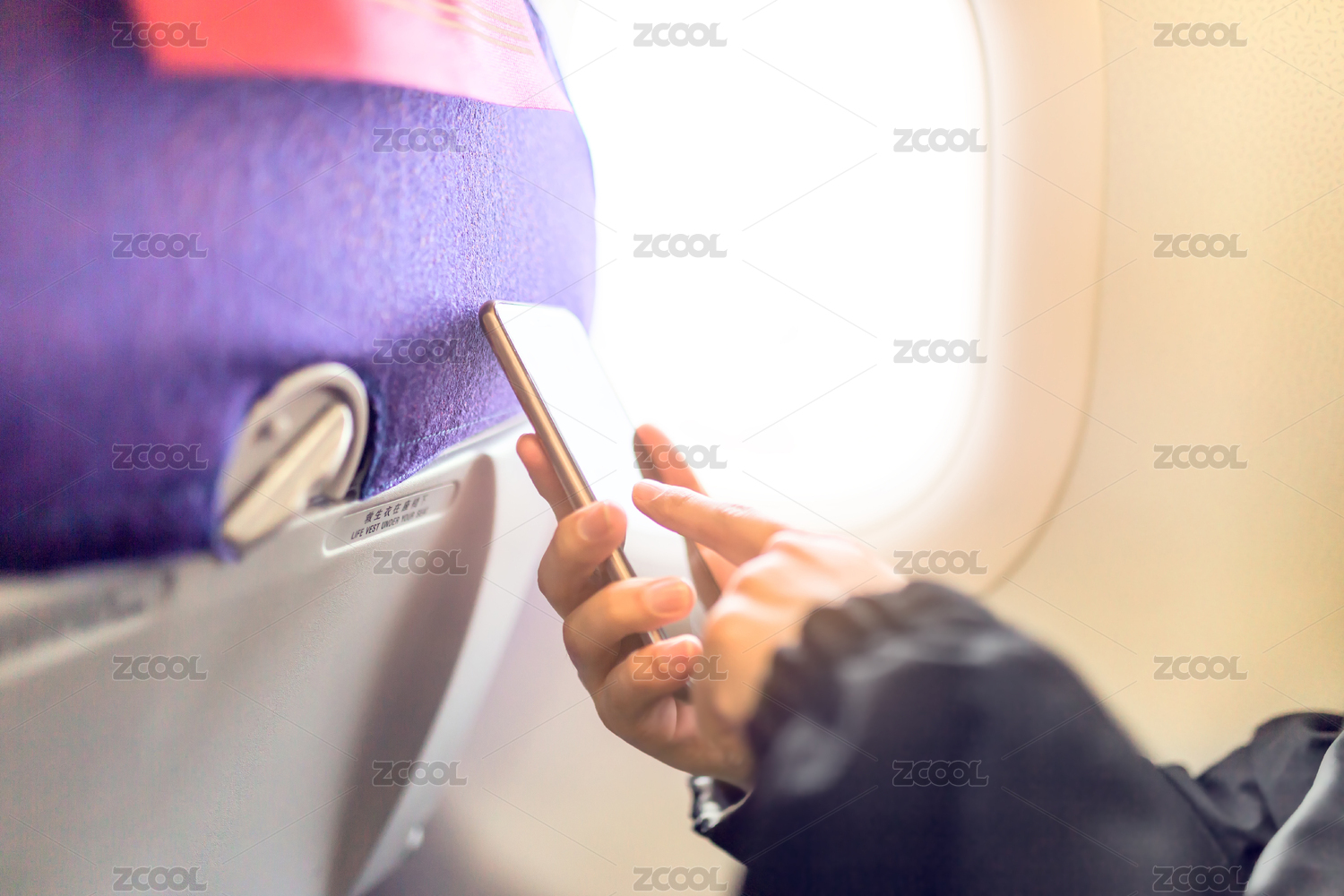 旅客在飞机中使用智能手机