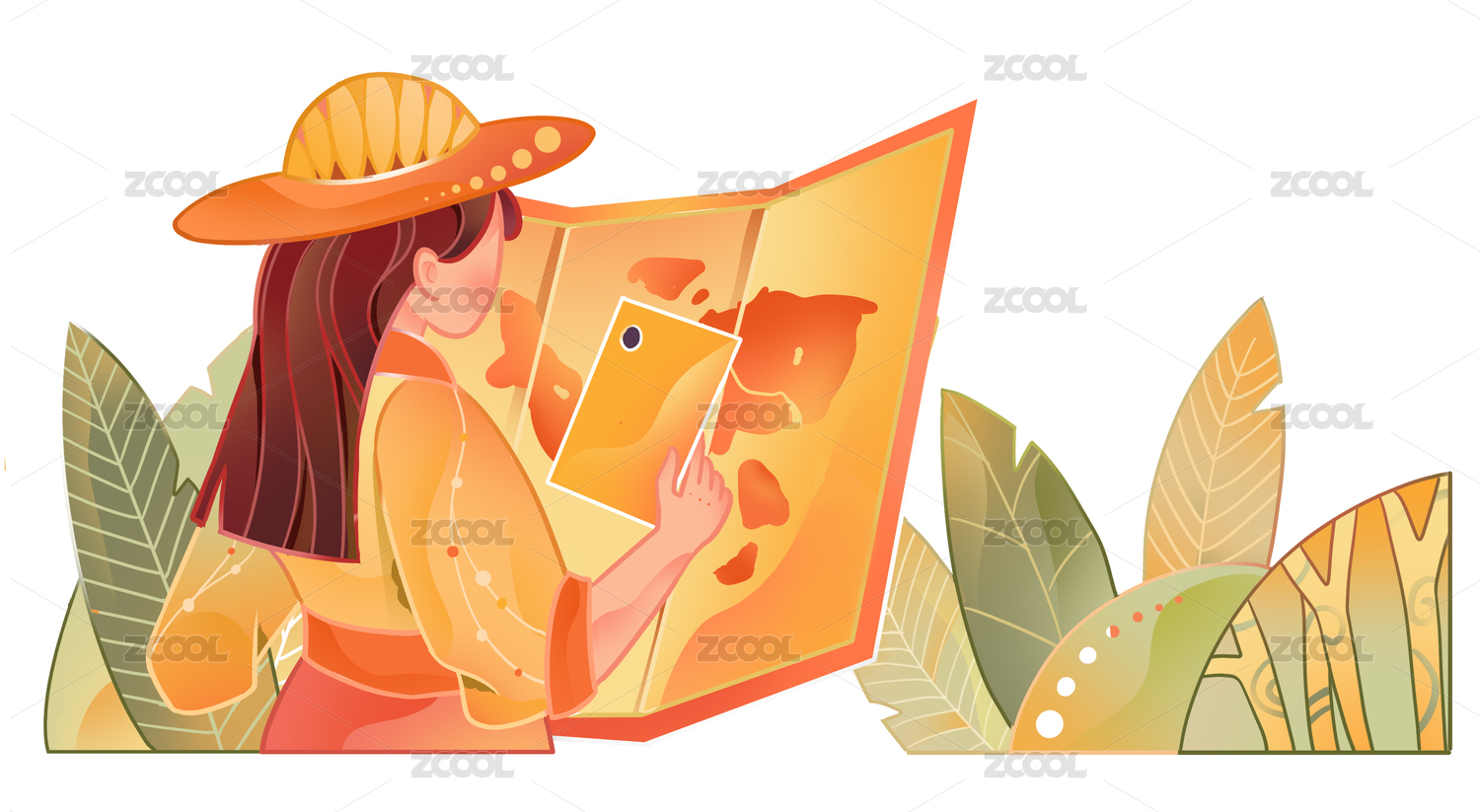 女孩在草丛中看地图