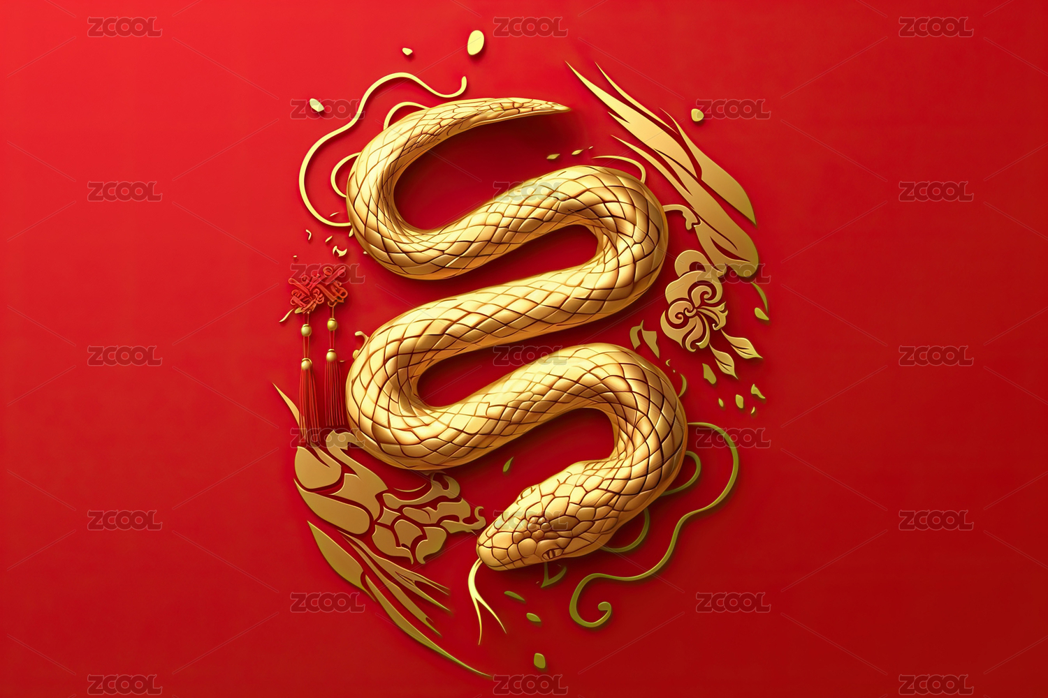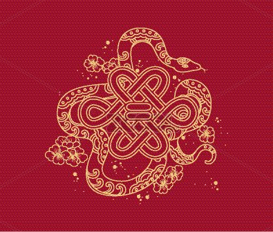 红色背景上的蛇年蛇形图案