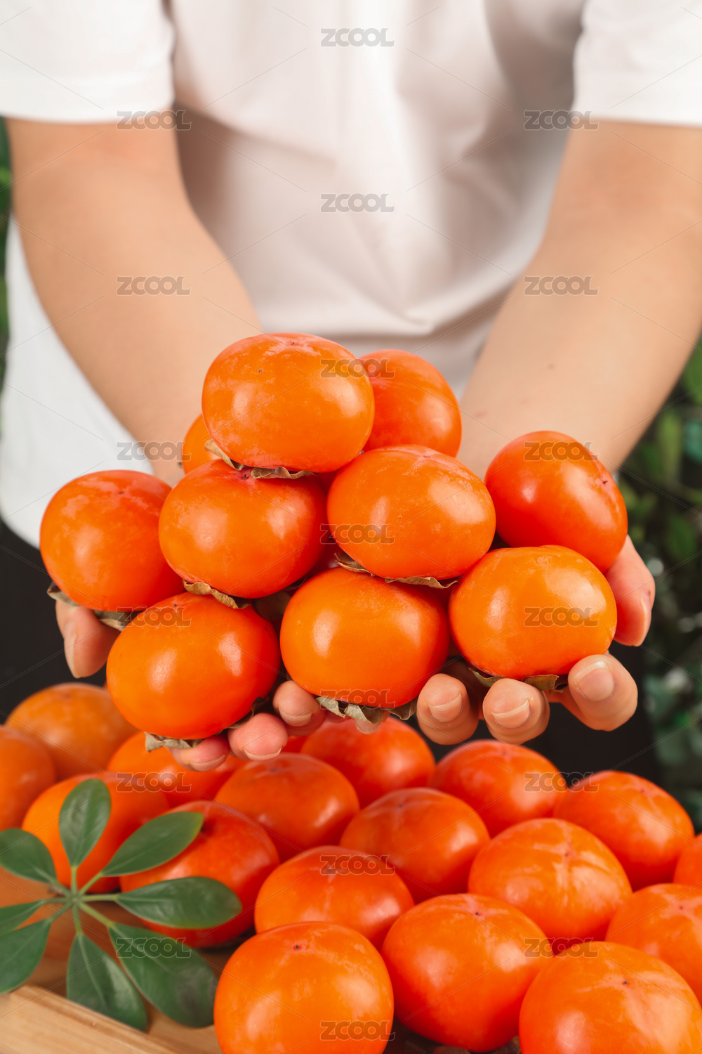 大自然中秋天丰收的水果水晶柿子的自然风景