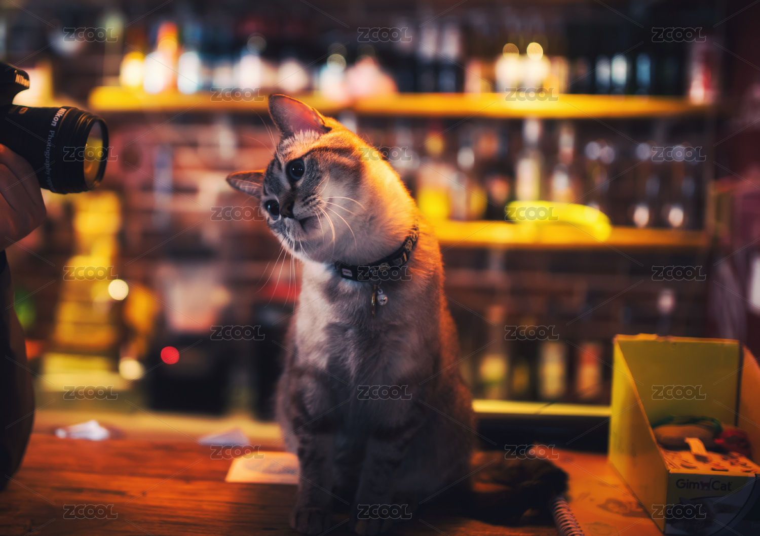 在咖啡馆中休息的小猫