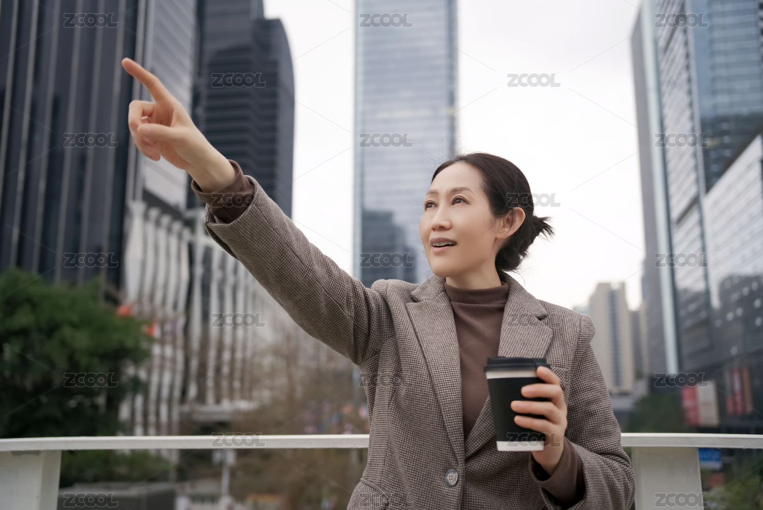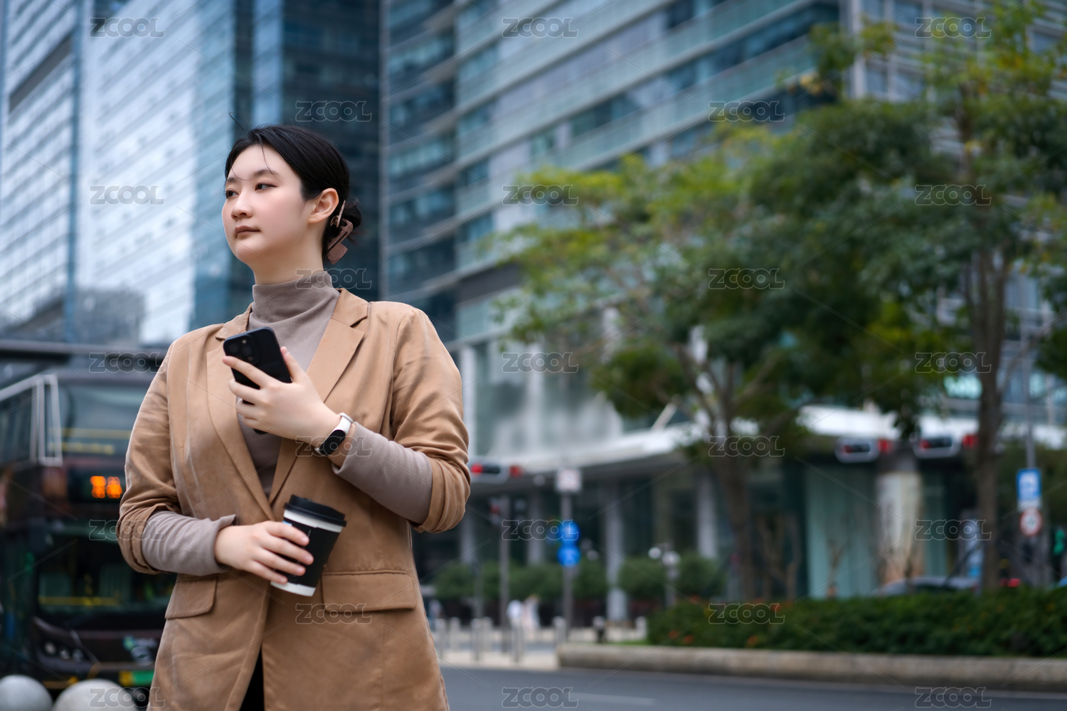 城市女商人在咖啡休息时赶出租车