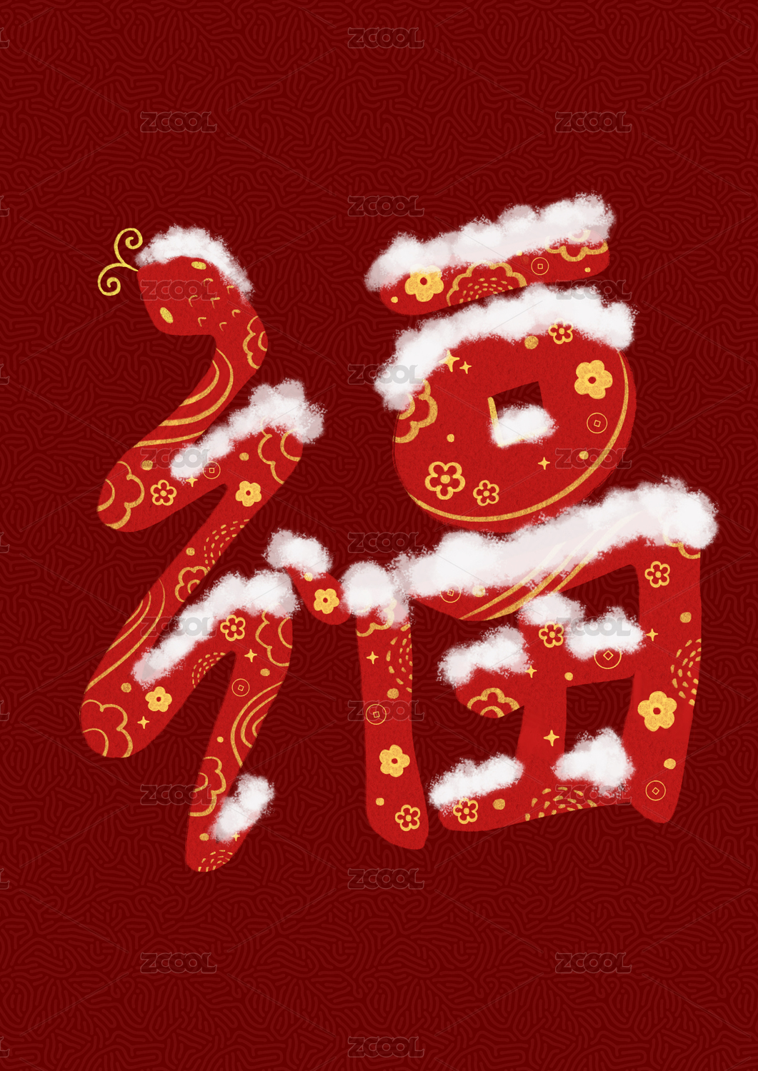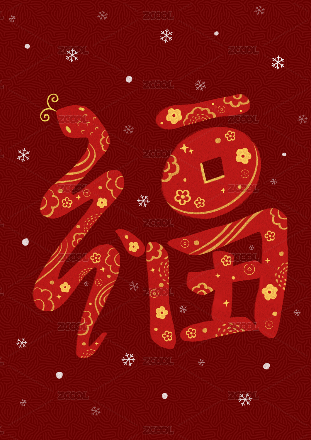 福字创意蛇年原创手绘插画
