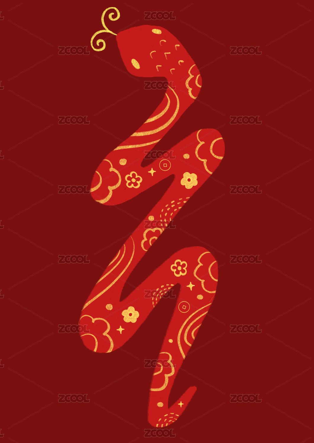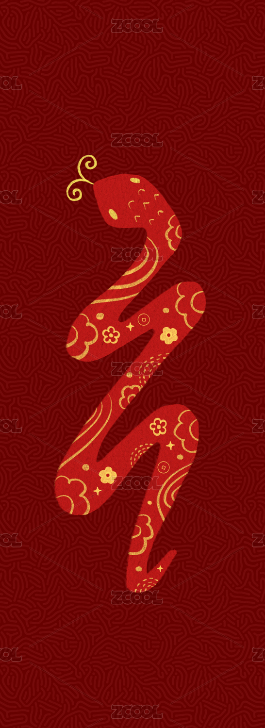 蛇年原创手绘插画红色纹理中国传统图案设计