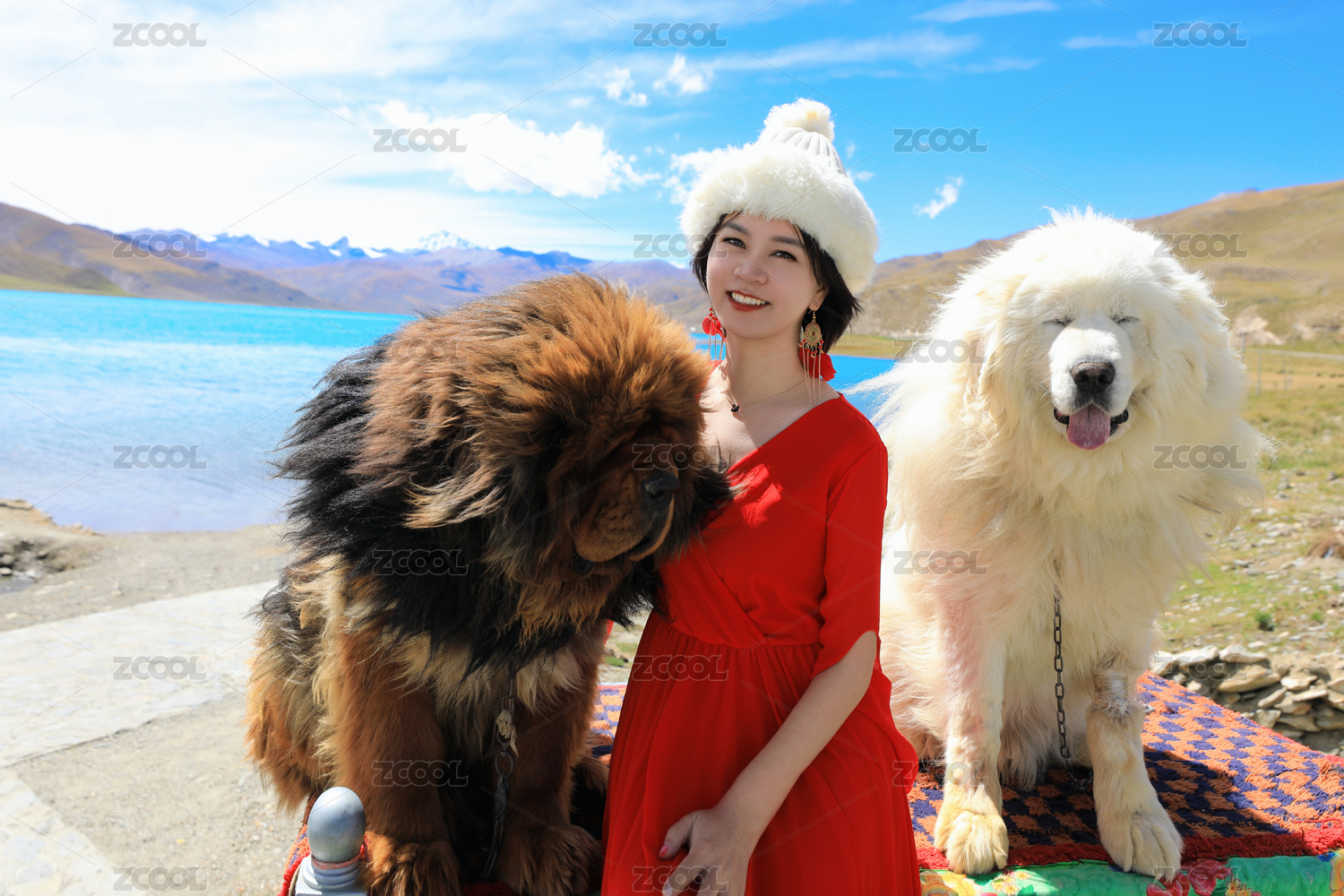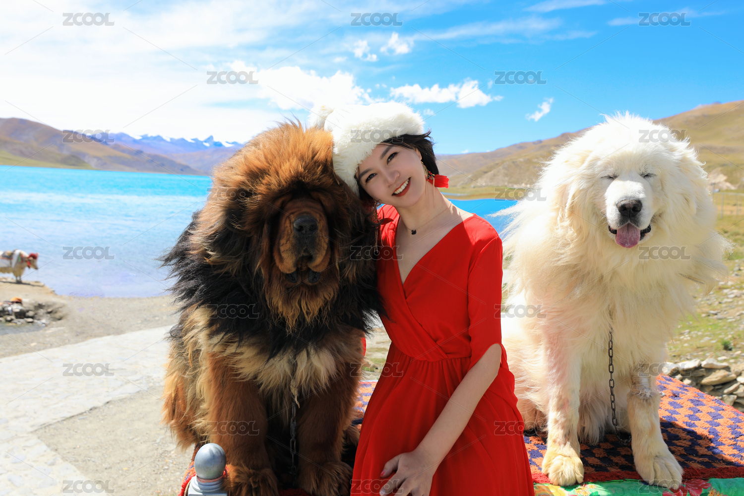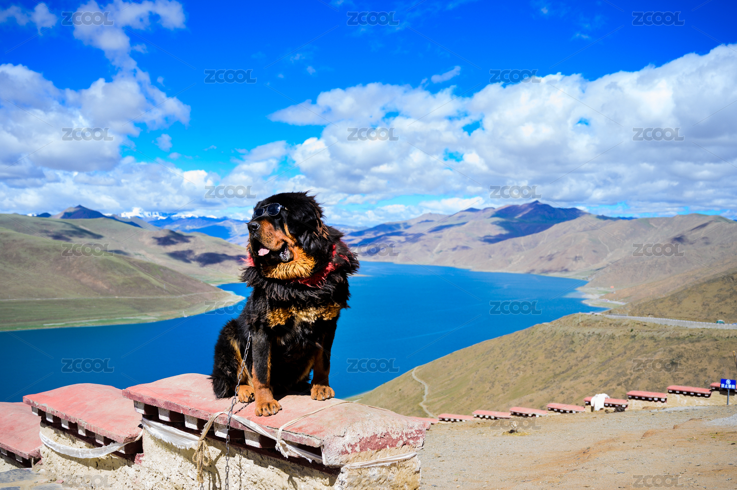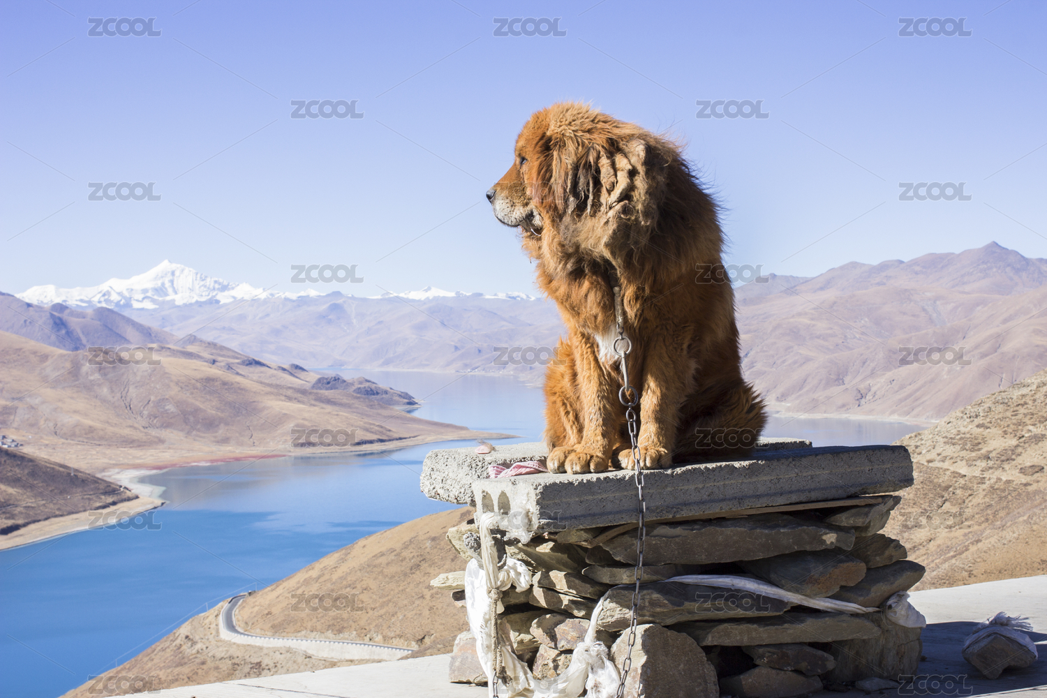 中国西藏拉萨羊卓雍措风景区的藏獒