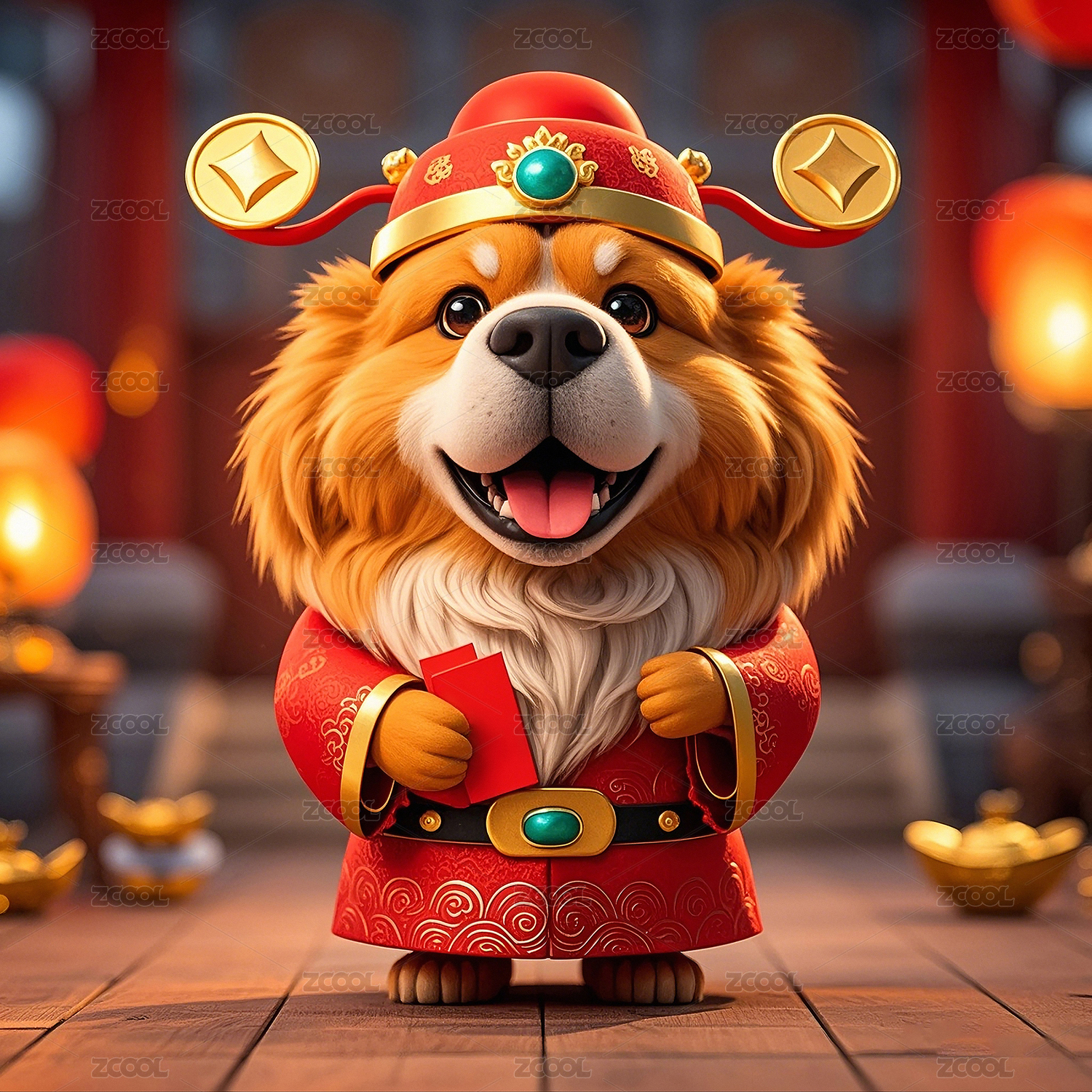 国潮十二生肖动物藏獒喜庆财神