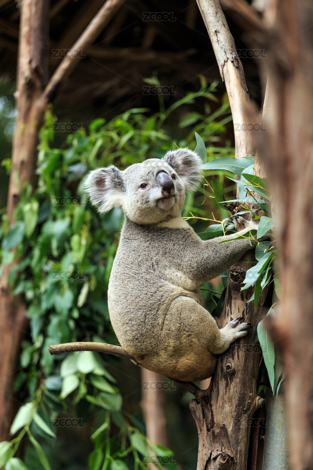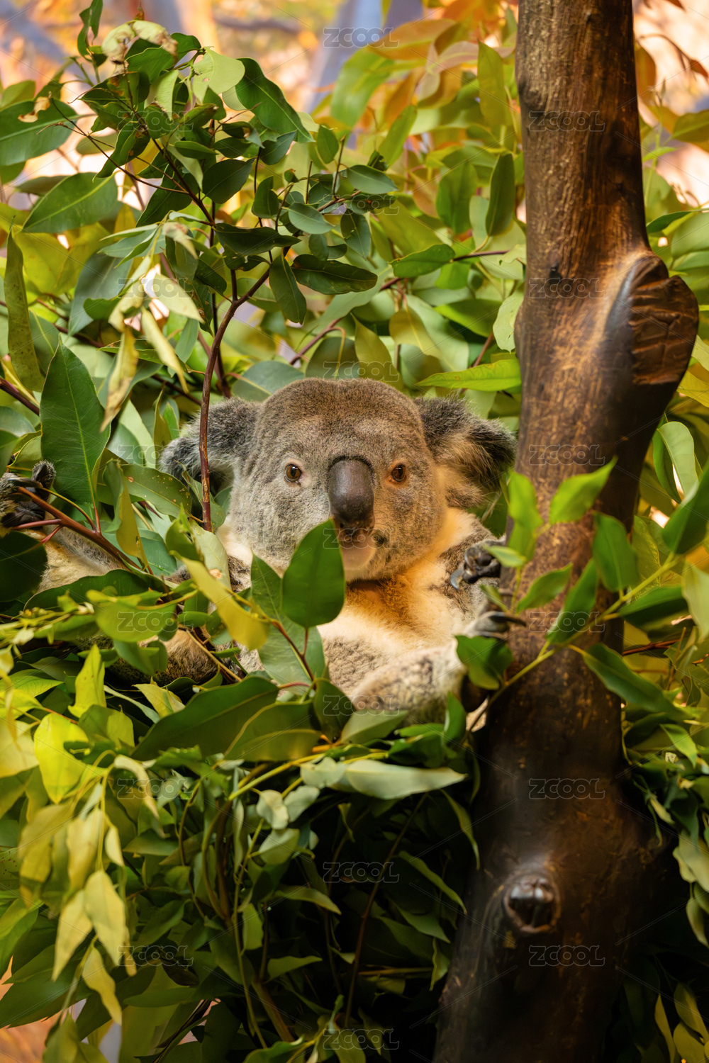 澳大利亚悉尼塔龙加动物园坐在桉树上的考拉