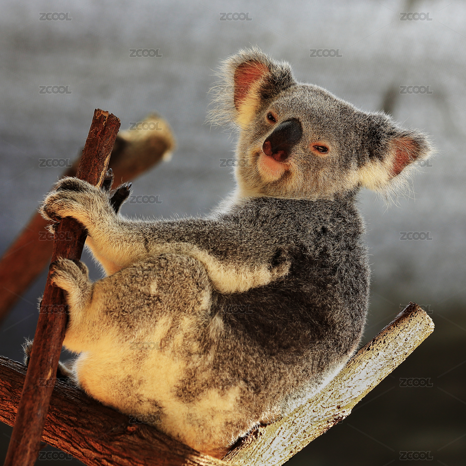 动物园中栖息在树枝上的考拉