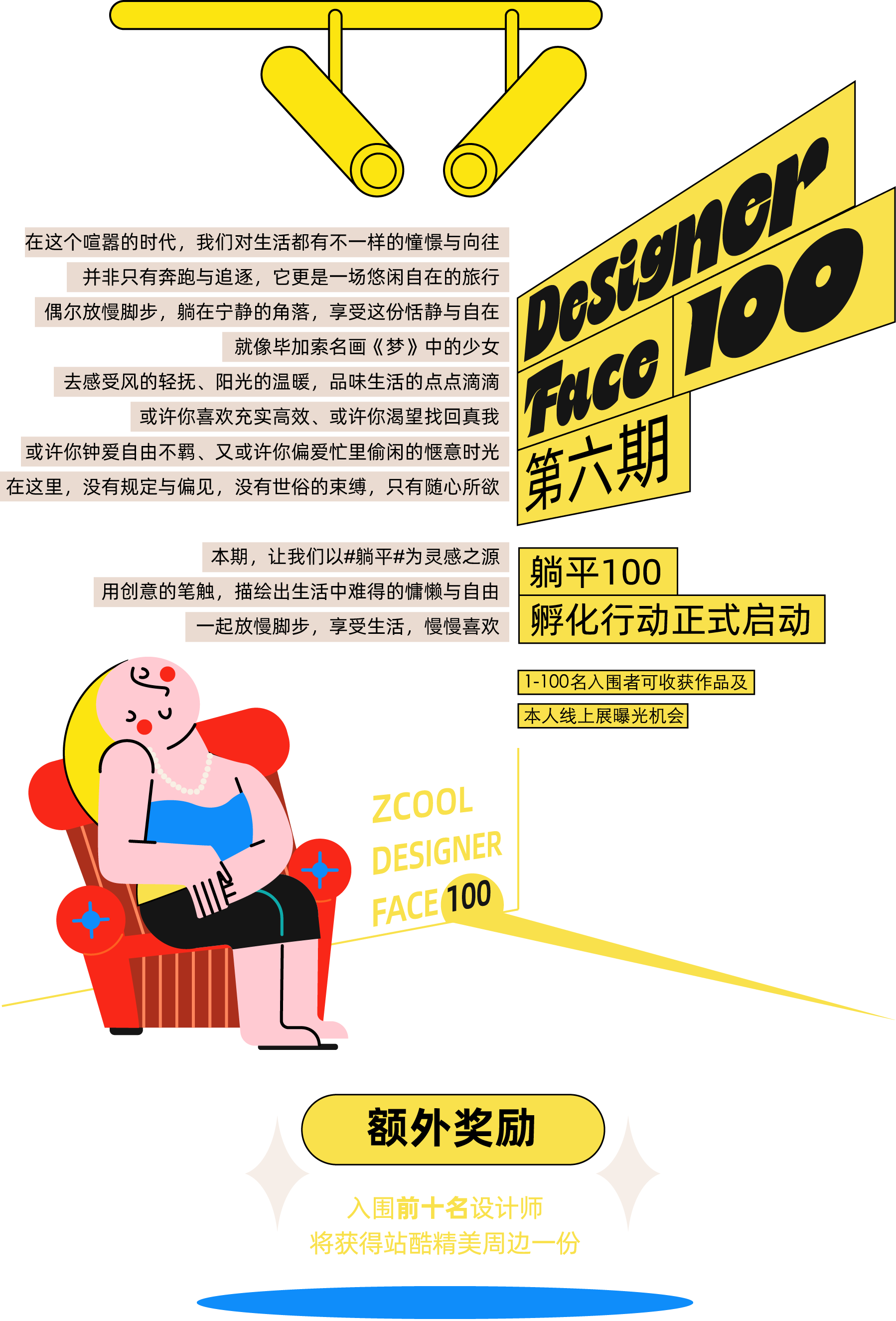 1、入围躺平1-100名,可拥有站酷颁发的 Designer Face 100 荣誉证书;