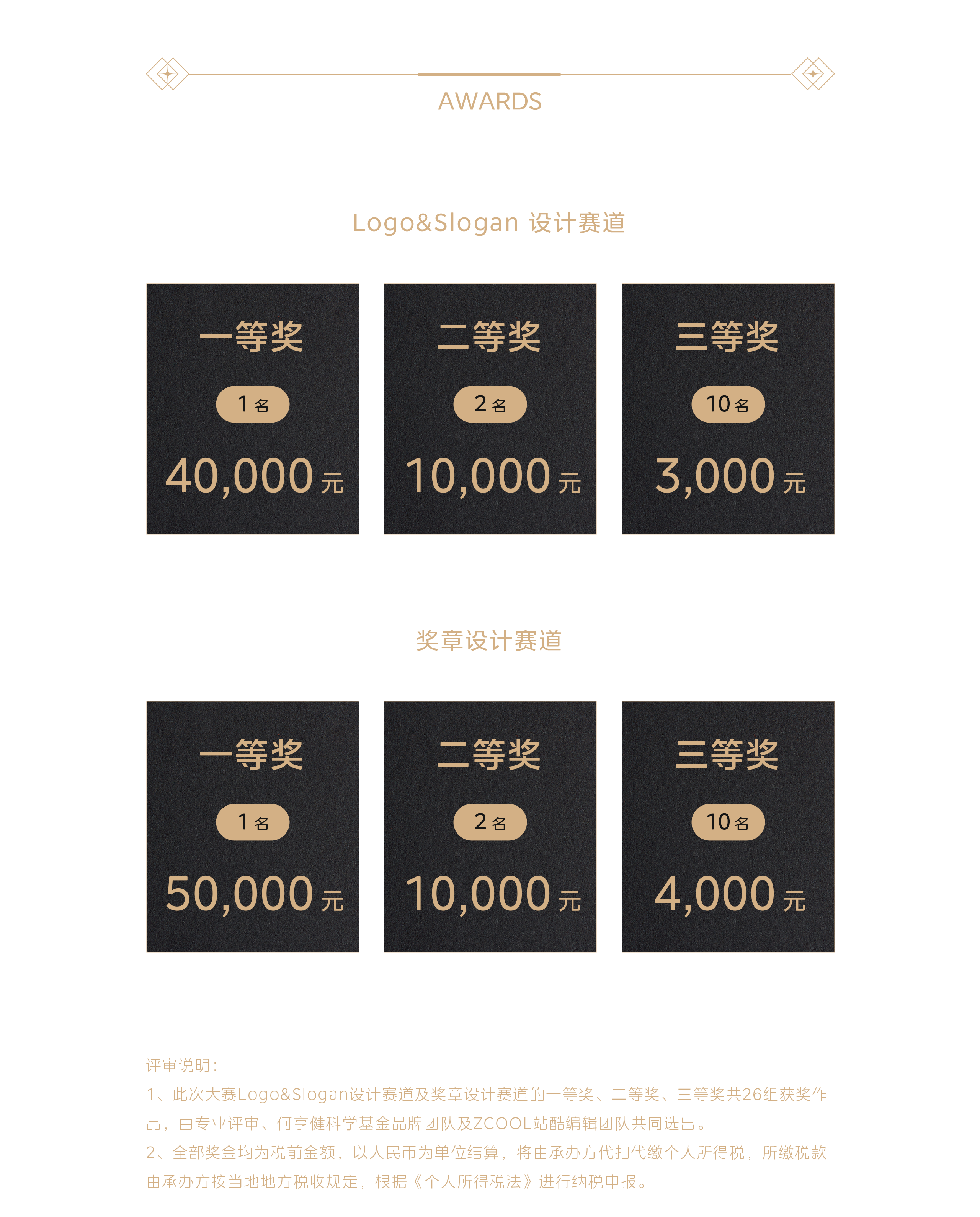 5、主办方如需对Logo&Slogan设计赛道的三等奖(共10组)获奖作品及奖章设计赛道的三等奖(共10组)获奖作品、活动福利奖获奖作品及其余未获奖参赛作品进行开发、生产、销售等商业用途,需取得参赛作者书面许可,并向参赛作者支付相应设计费用。