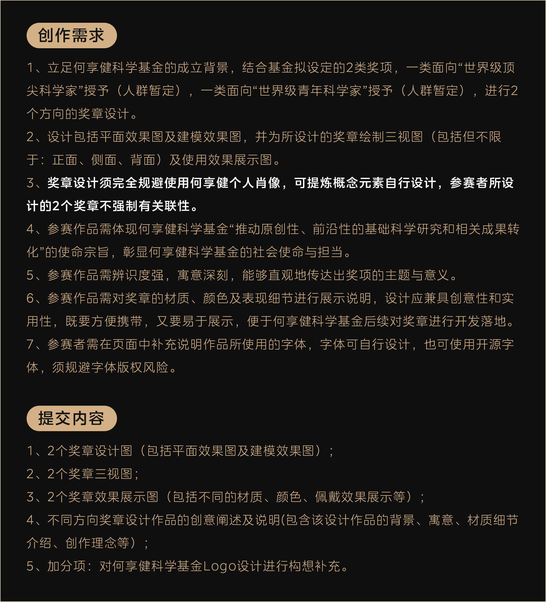 2、若主办方需对Logo&Slogan设计赛道的一等奖(共1组)、二等奖(共2组)获奖作品及奖章设计赛道的一等奖(共1组)、二等奖(共2组)获奖作品进行进一步完善、开发或设计产品落地,获奖者需协助配合。