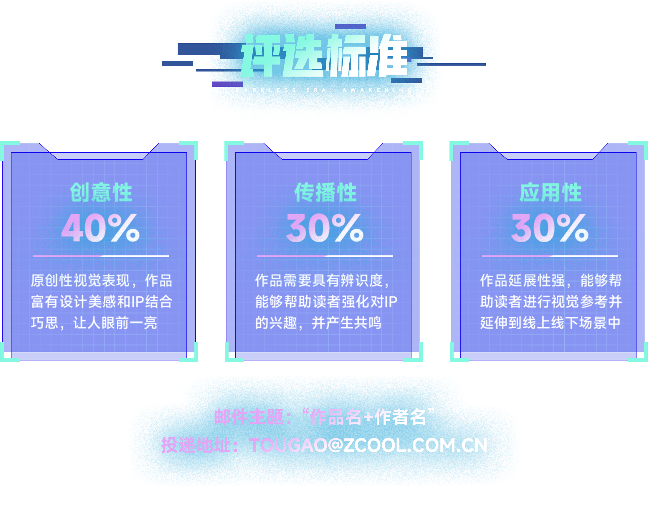 8. 为了让作品呈现的方式具有统一性,以助于主办方的传播推广,请参赛者下载并使用本次大赛【赛事资料】中的赛事模版进行作品创作。将作品存为RGB模式,JPG格式,用于作品投稿,并保留好作品源文件。如需呈现更多效果(比如动效或视频等),请自行存储为能够完整呈现作品的模式(包括但不限于GIF格式)即可;
