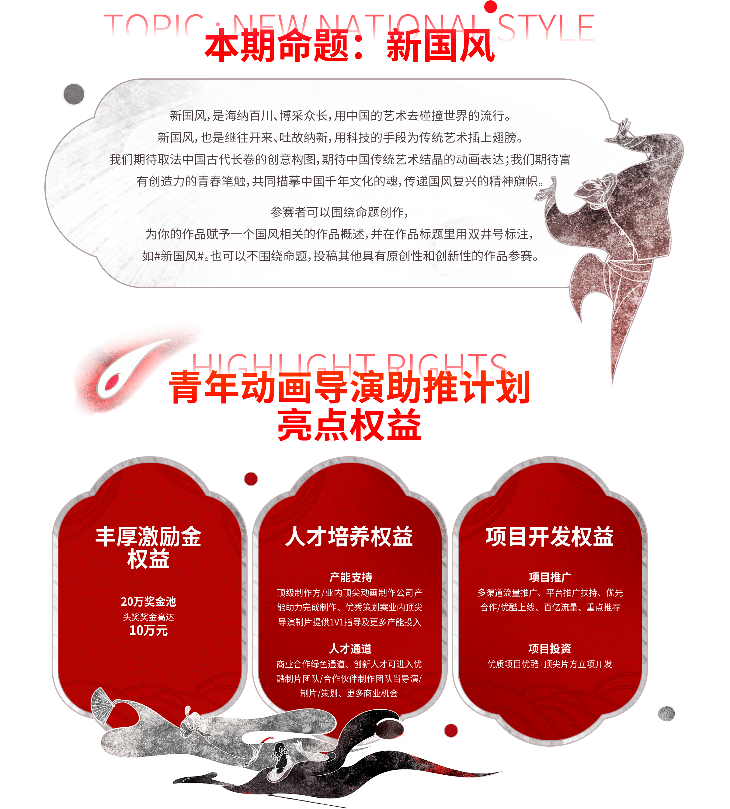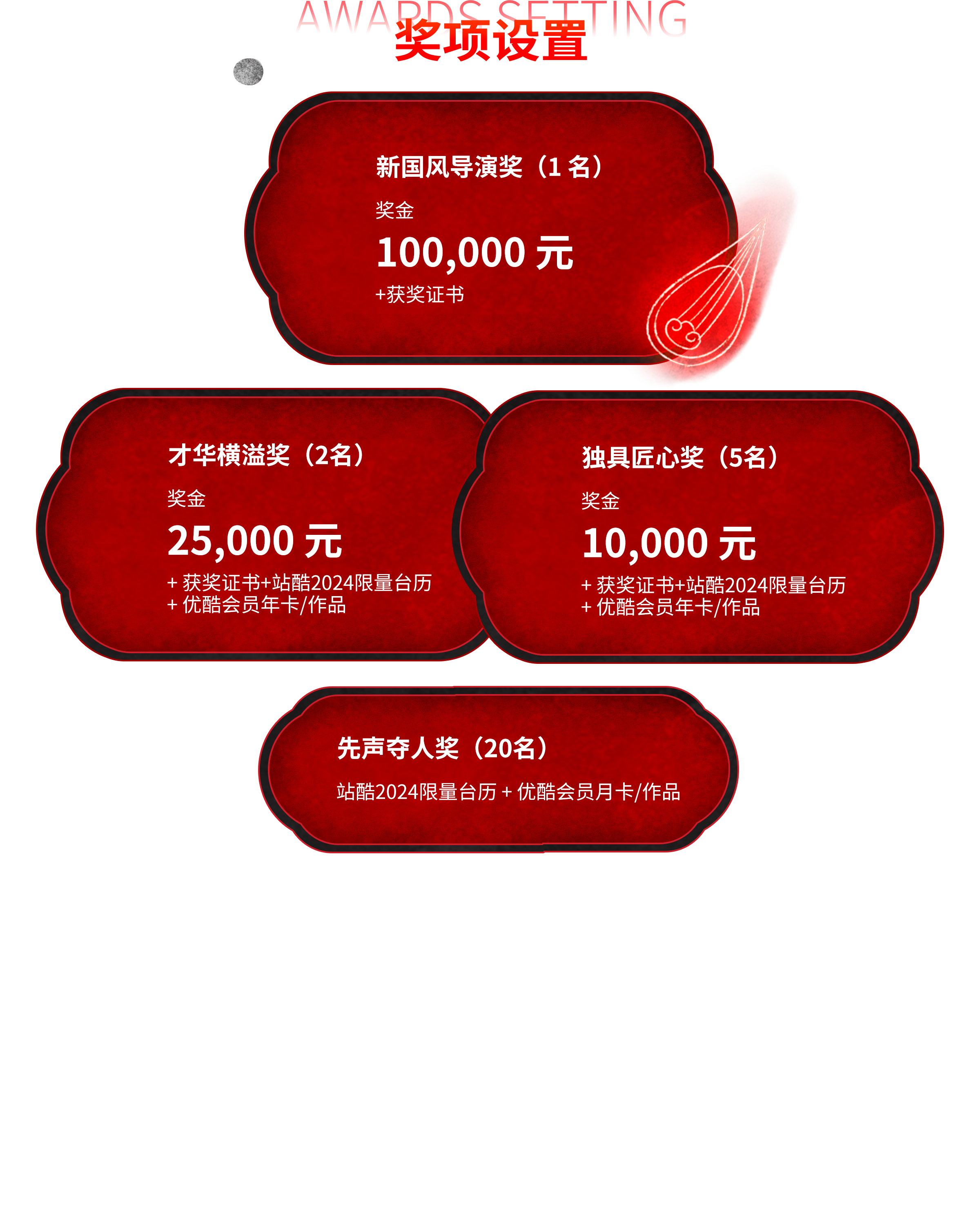 非命题创作:上传任何有独立,创新表达的原创作品即可,非命题创作作品不参与【新国风导演奖】角逐。