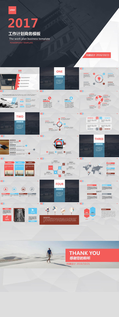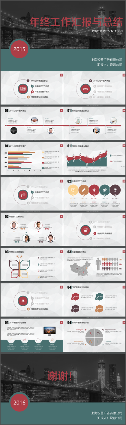 时尚简约公司企业年度工作总结汇报新年计划PPT模板