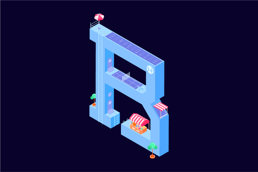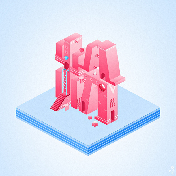 2.5D插画-618文字的线稿及上色(临摹作品)