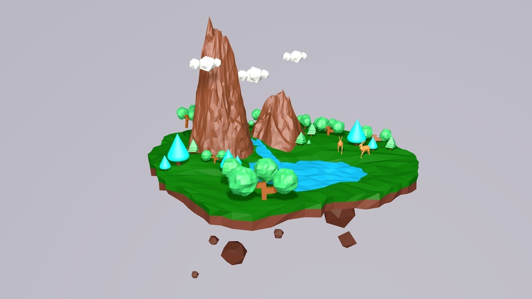 C4D low poly小岛
