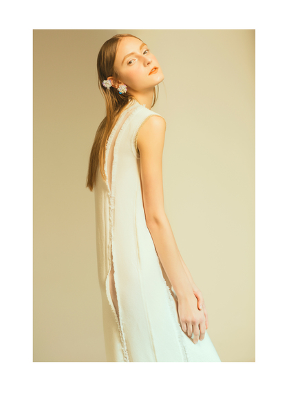 高级丝绸质感花瓣白色礼服连衣裙Sasha