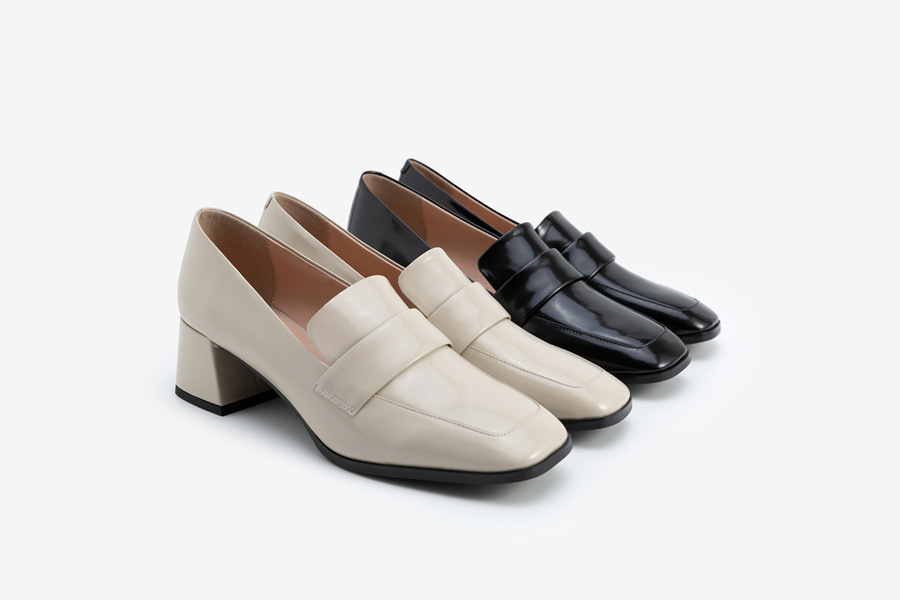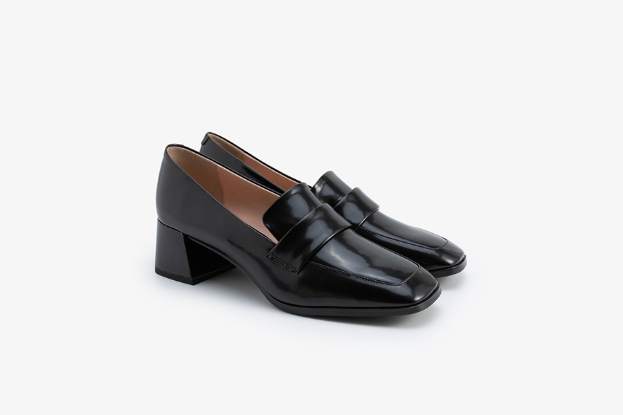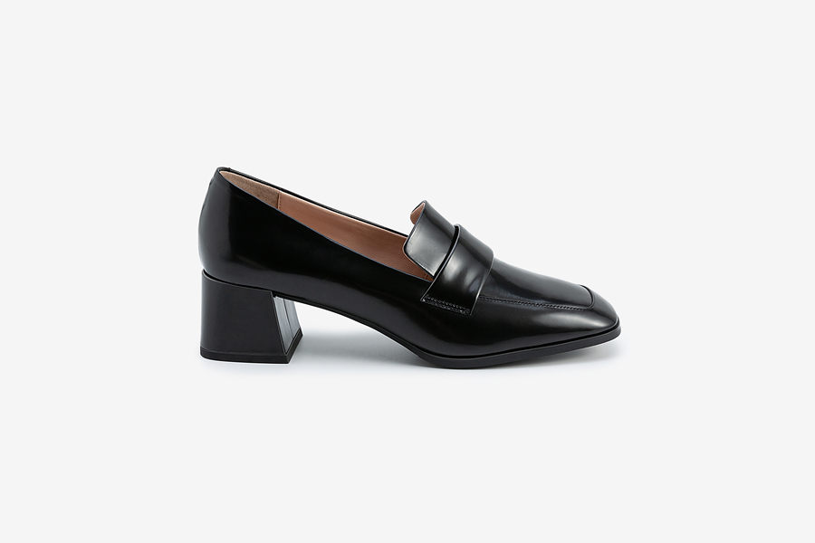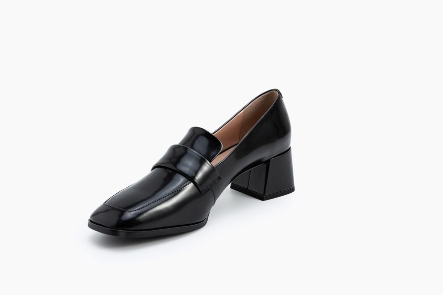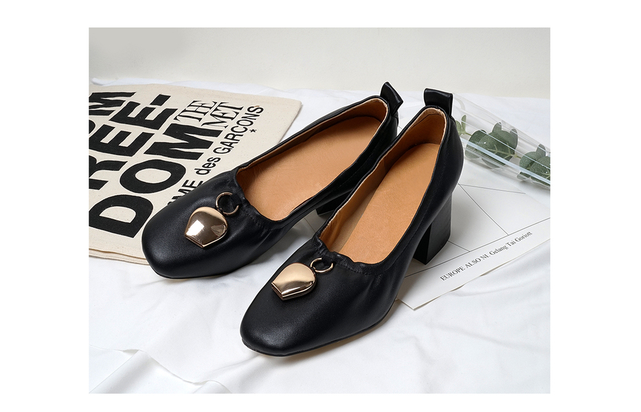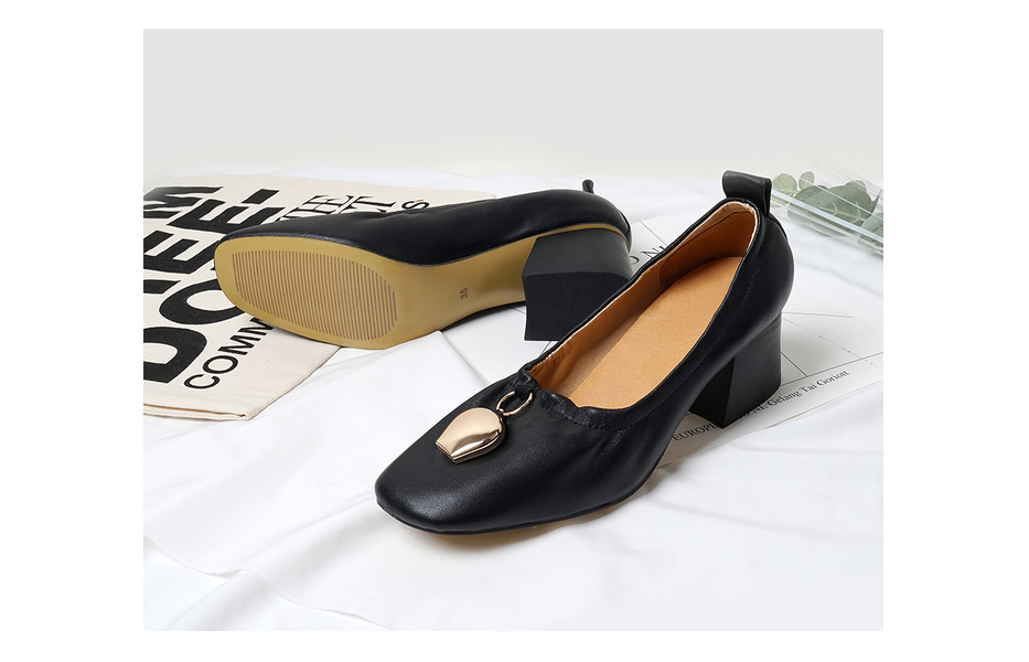 方头粗跟通勤鞋