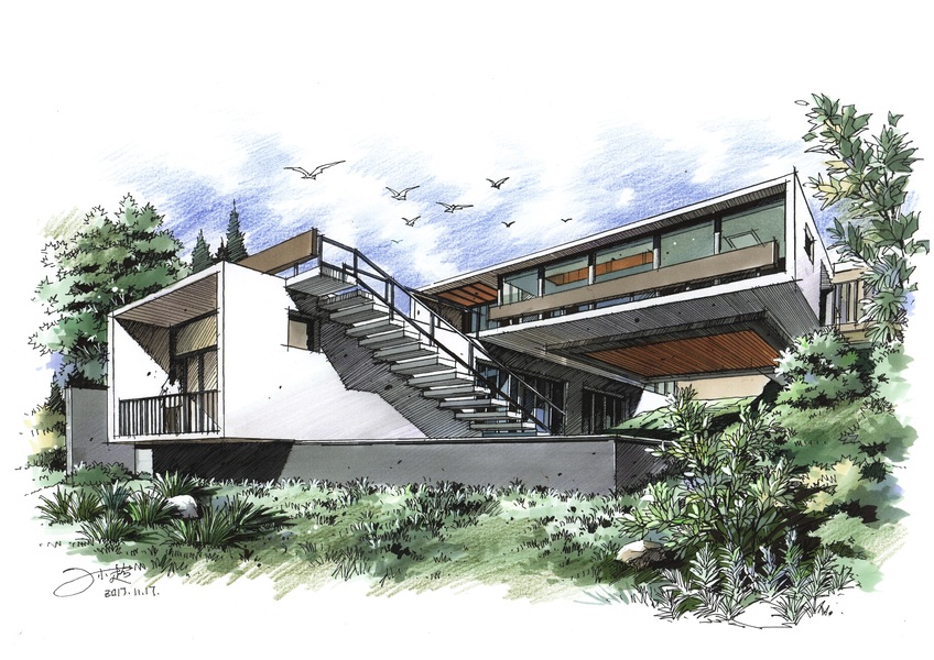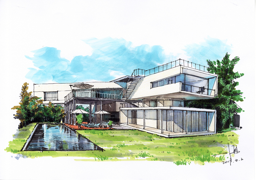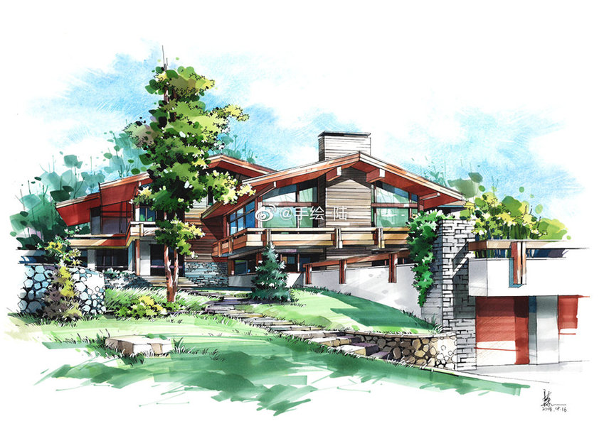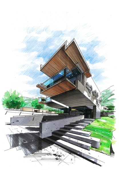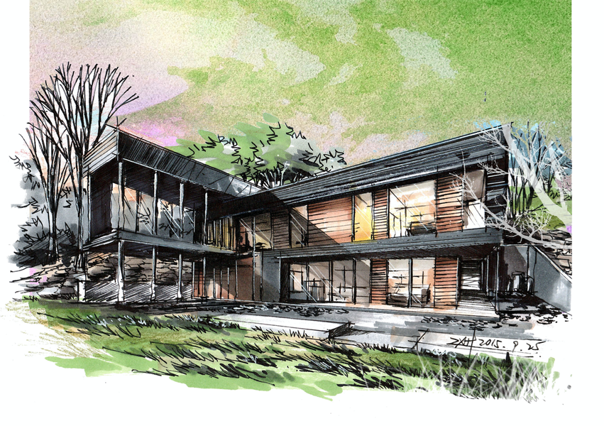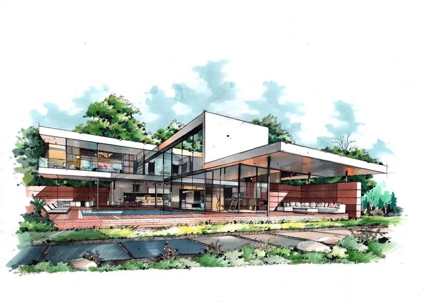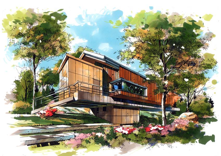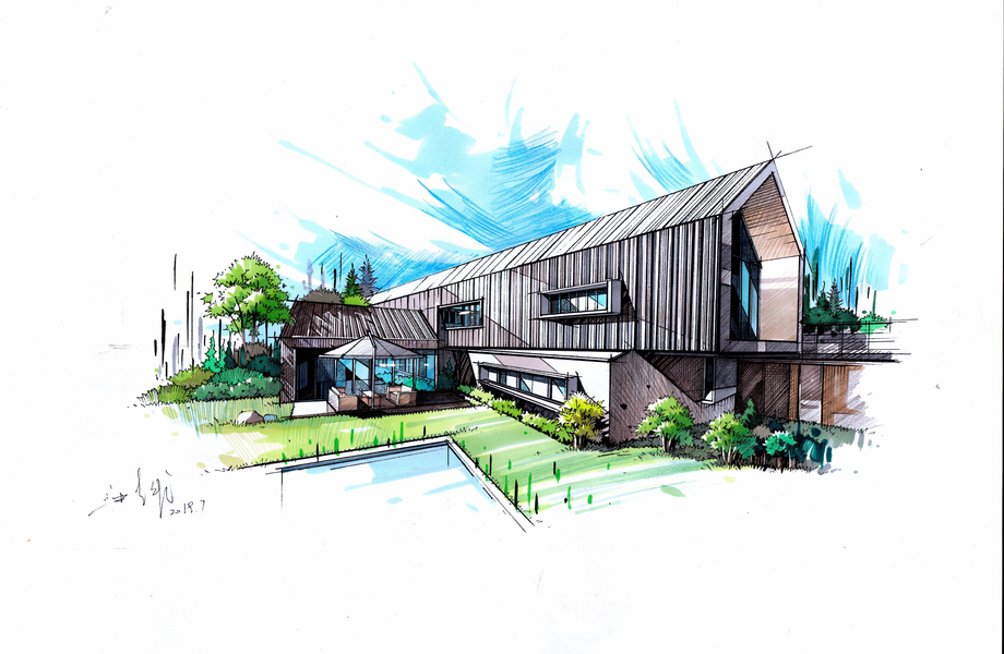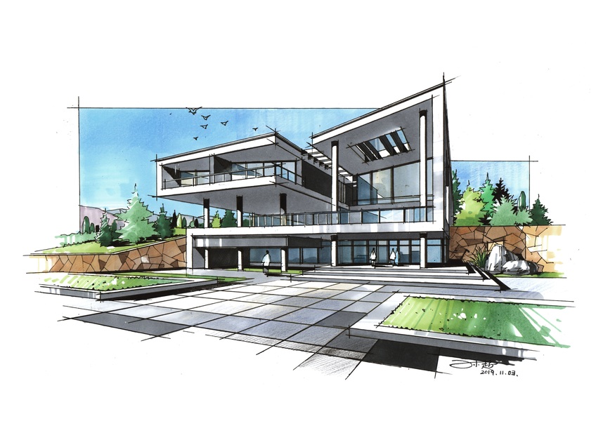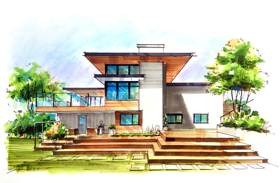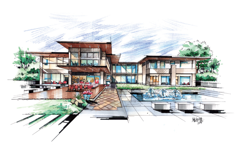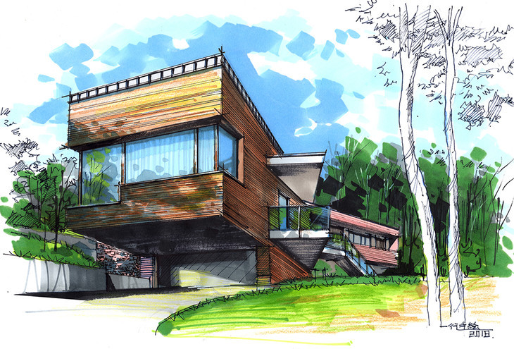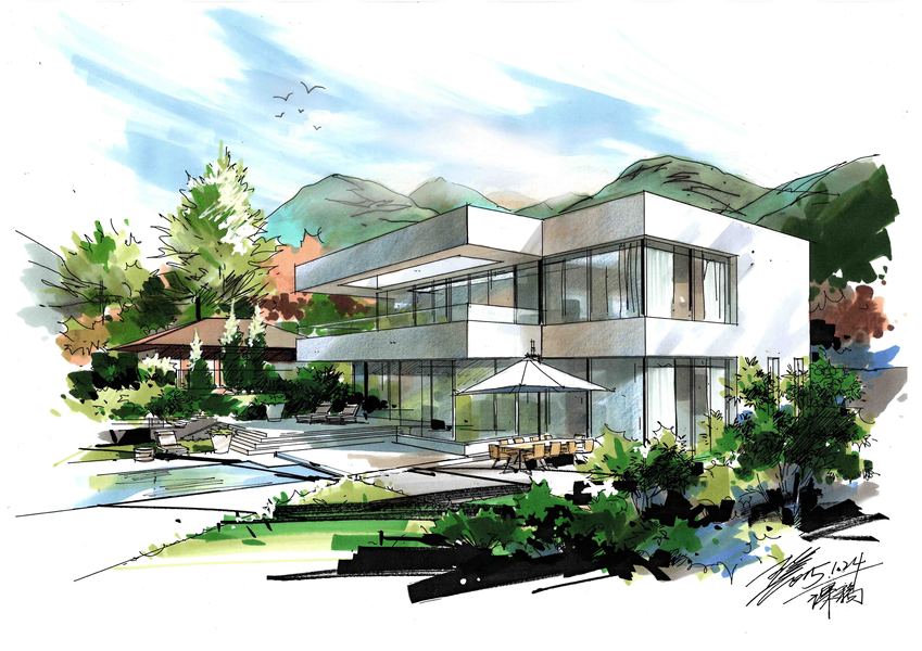 建筑别墅手绘设计