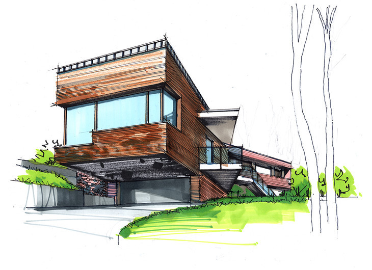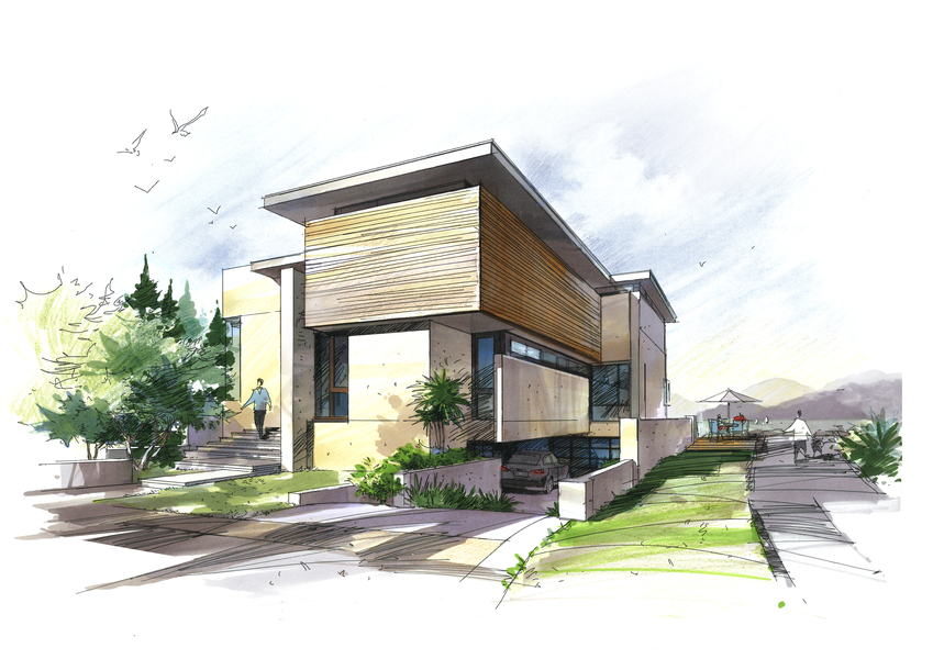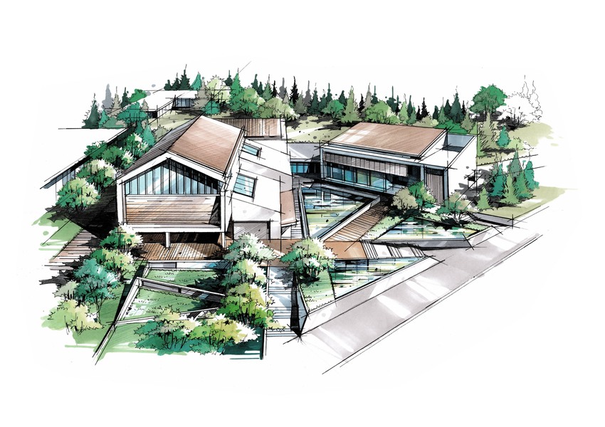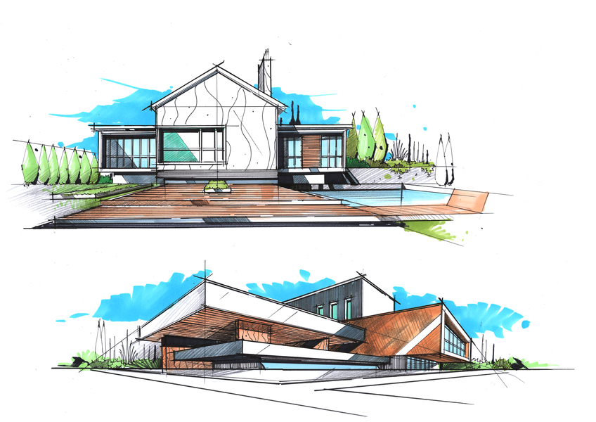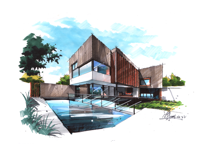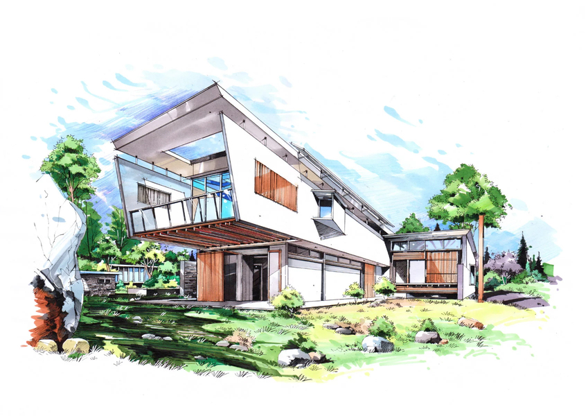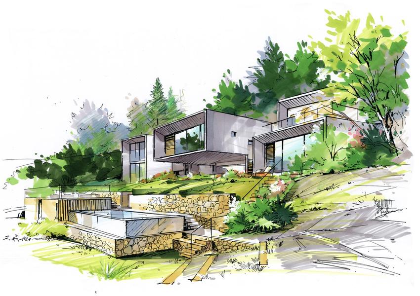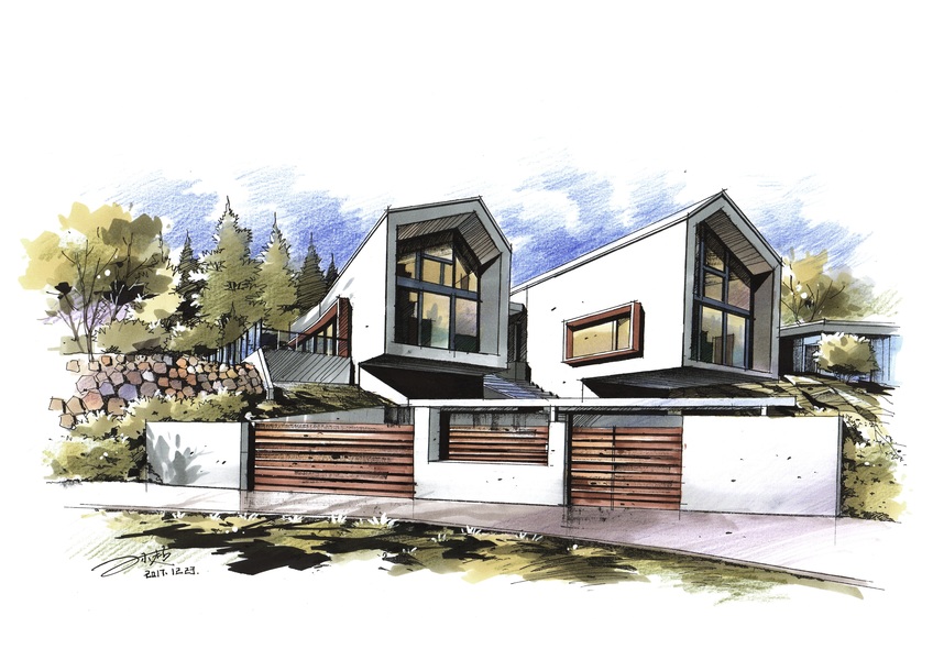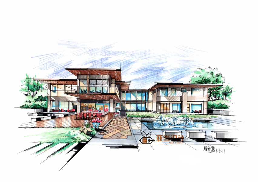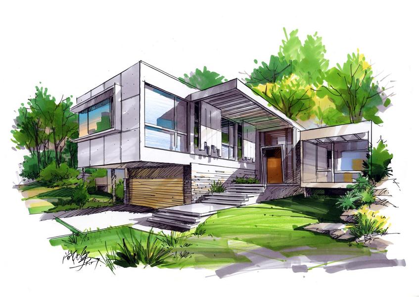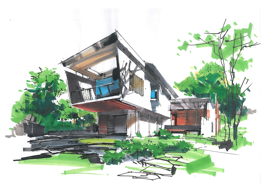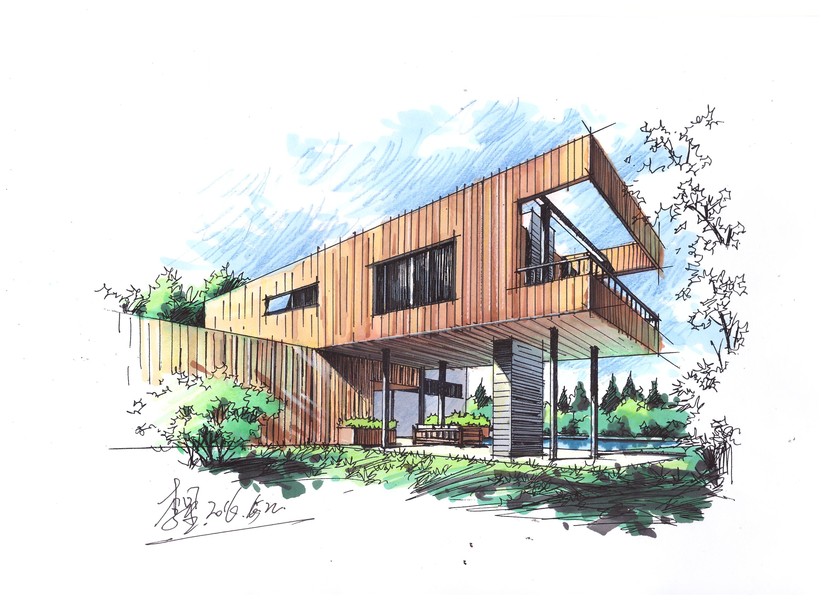 建筑别墅手绘设计