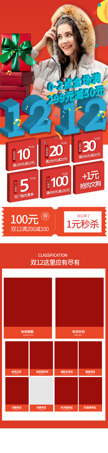 2017双12活动页面电脑端PC页面二级页面1920页面服装