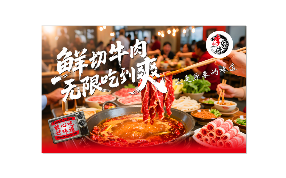 经典黑红搭配 潮汕牛肉火锅/ logo 应用设计