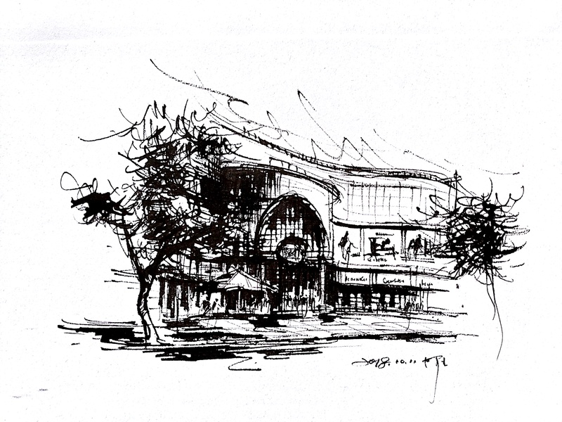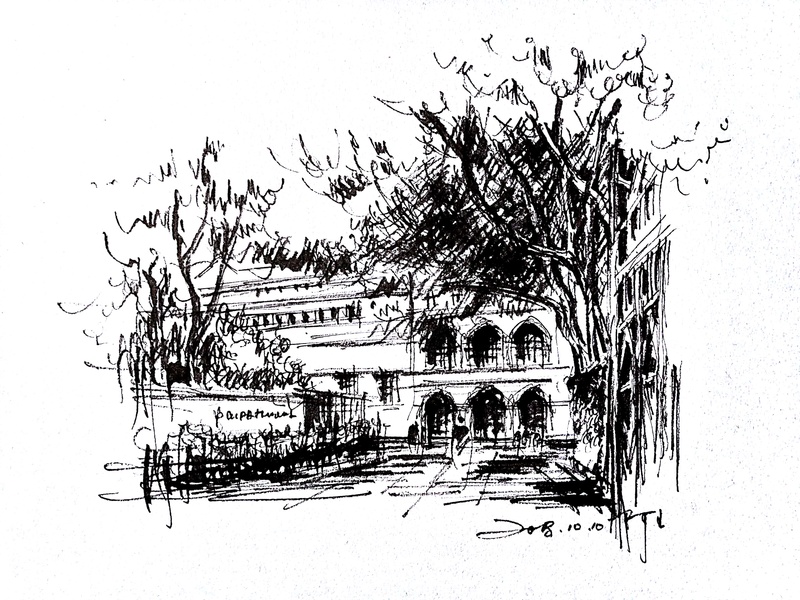 速写钢笔画阿王建筑风景