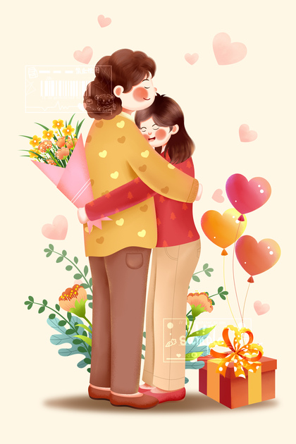 母亲节快乐 母亲节插画 母女插画 母子插画