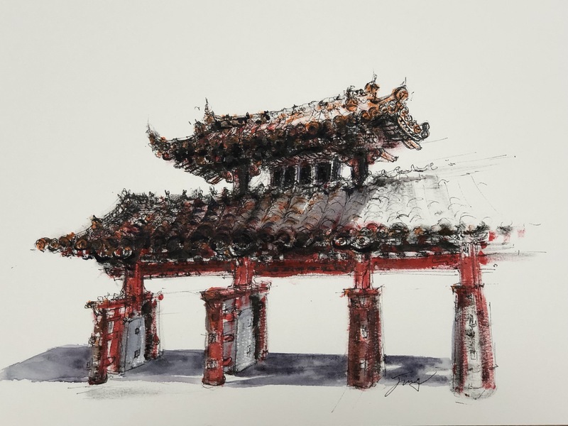 青岛写生 钢笔淡彩