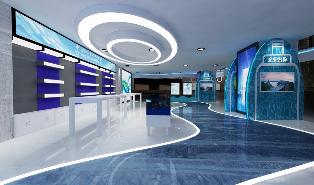冬奥会零售展蓝白系现代风3D效果图