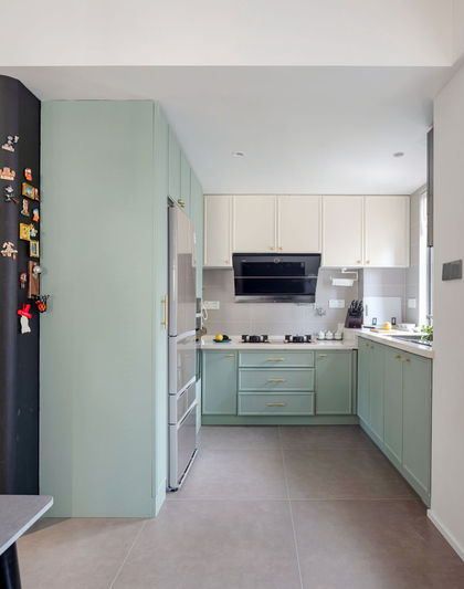105㎡三口之家,折叠窗、小吧台、蓝色墙...氛围感MAX