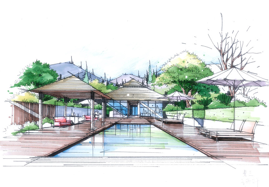 【集尤客手绘作品分享】苗长银老师景观空间马克笔色彩