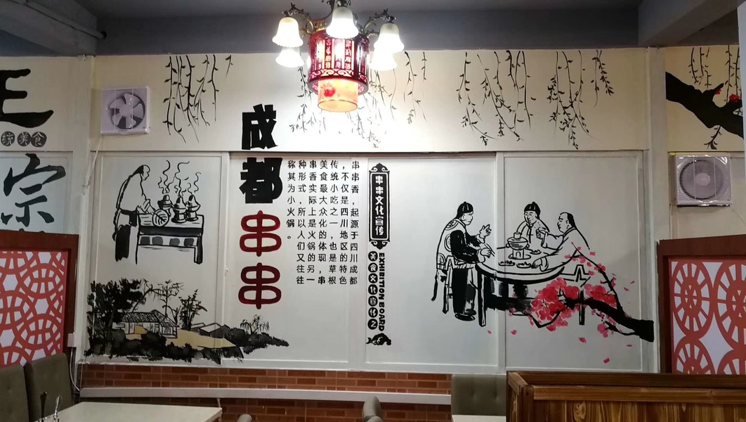 火锅店墙绘,餐饮墙绘,串串店墙绘,成都墙绘