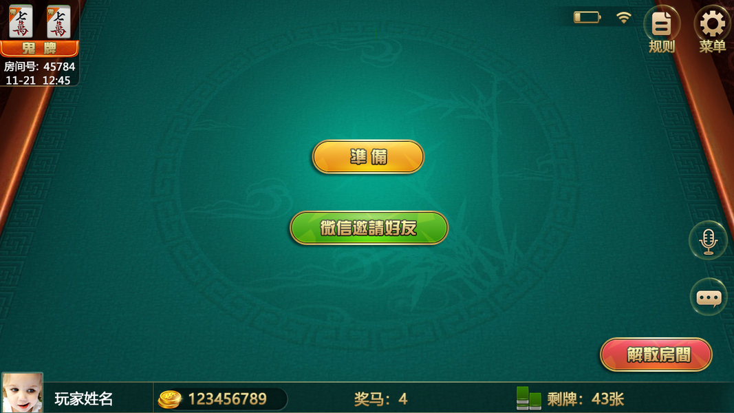 棋牌游戏界面