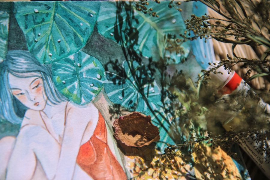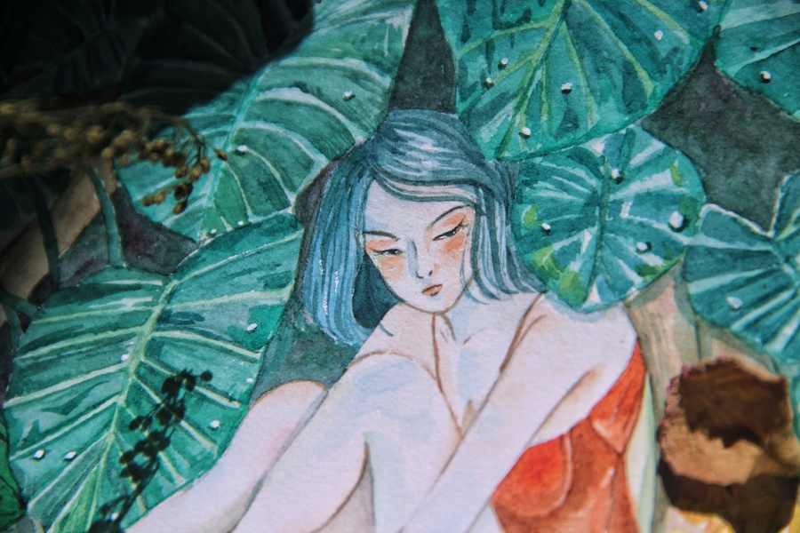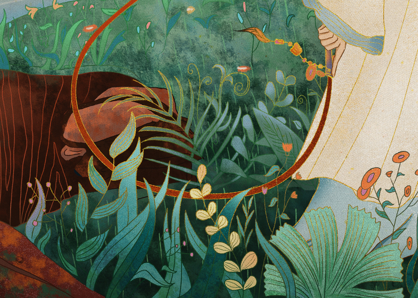 原创国风商业插画中国古代神话故事系列——神农尝百草