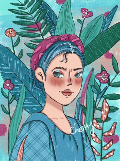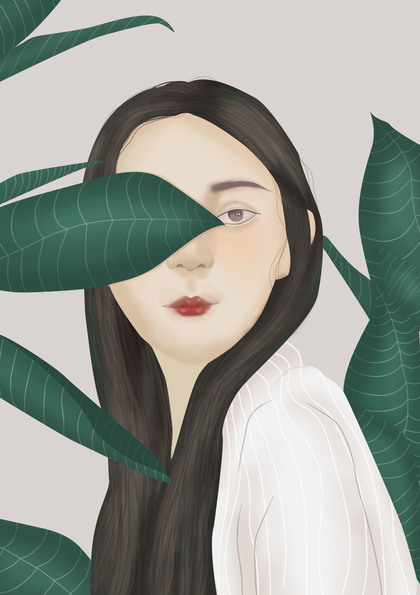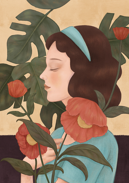 系列插画 花和女孩