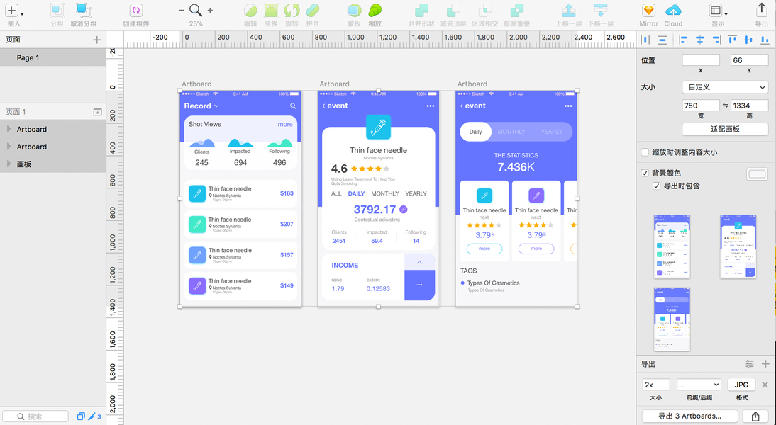 sketch设计 | 趋势图表卡片UI 【附源文件】