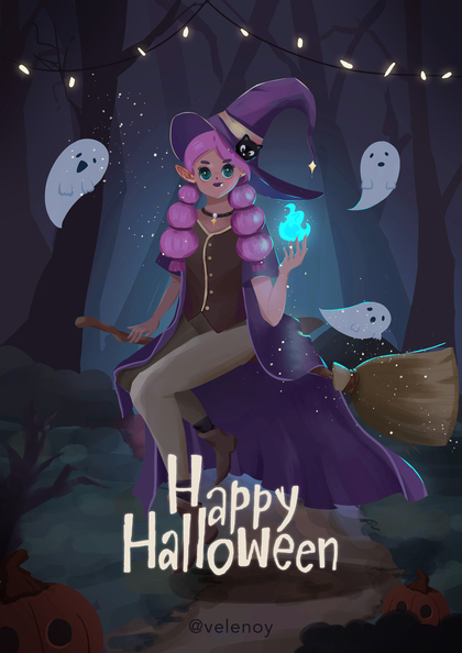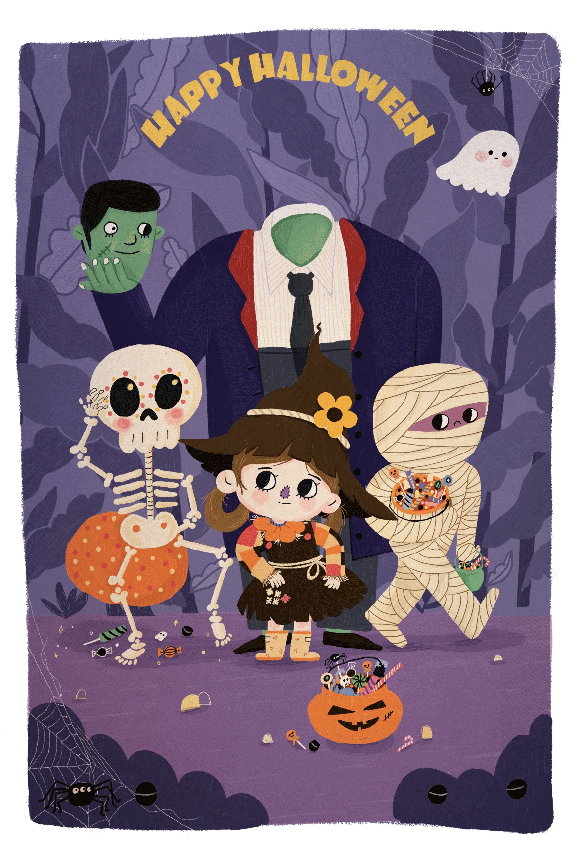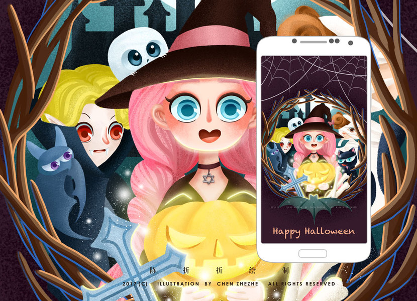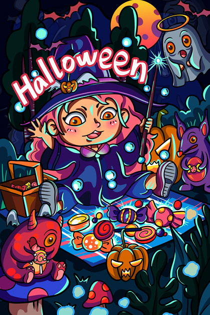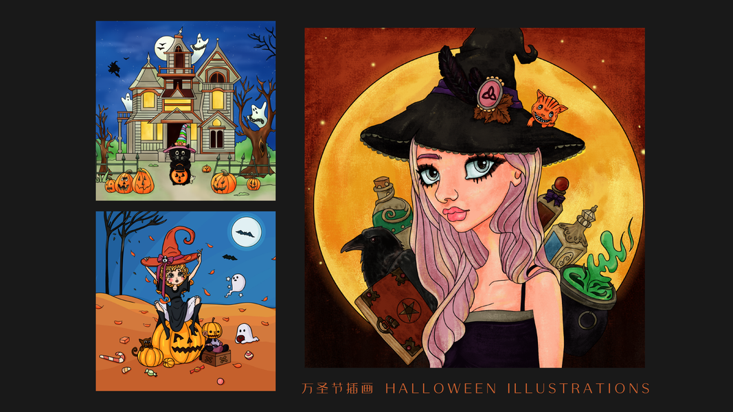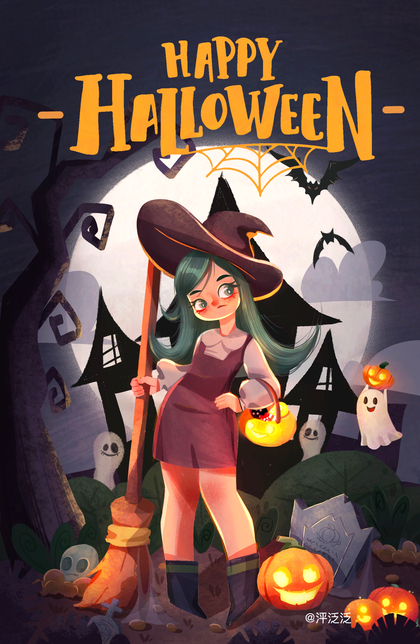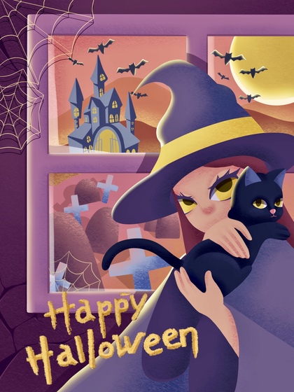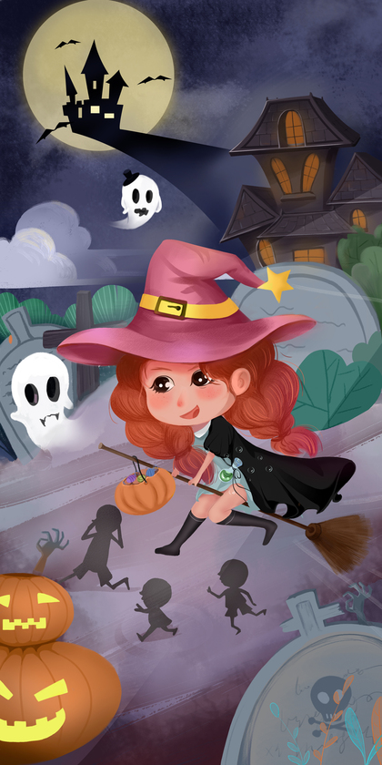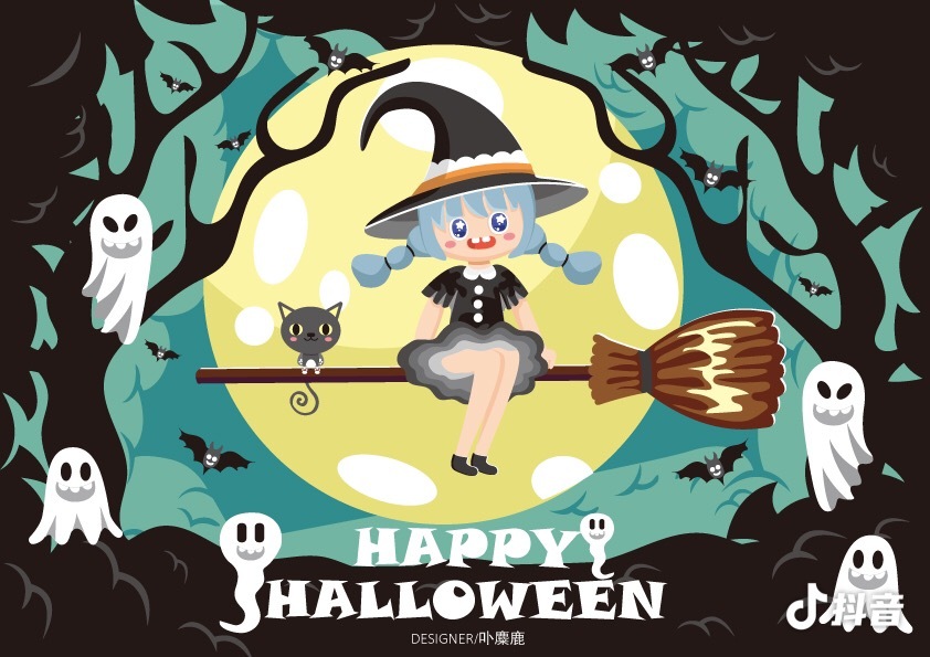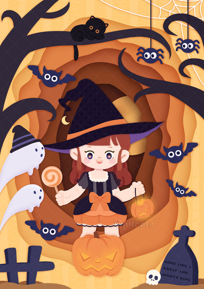 剪纸风插画|注意!🎃万圣节有魔女出没