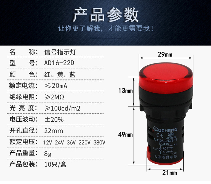 指示灯按钮详情页设计