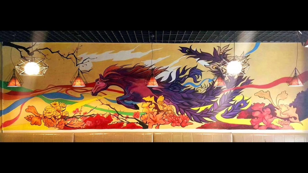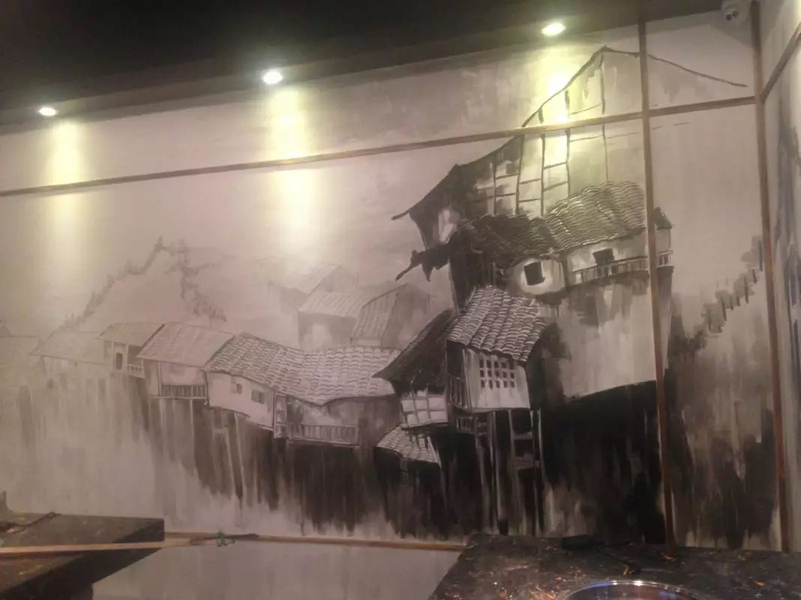 墙绘 涂鸦 壁画 风景墙绘 餐厅墙绘 饭馆墙绘