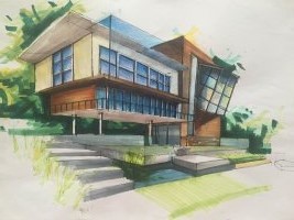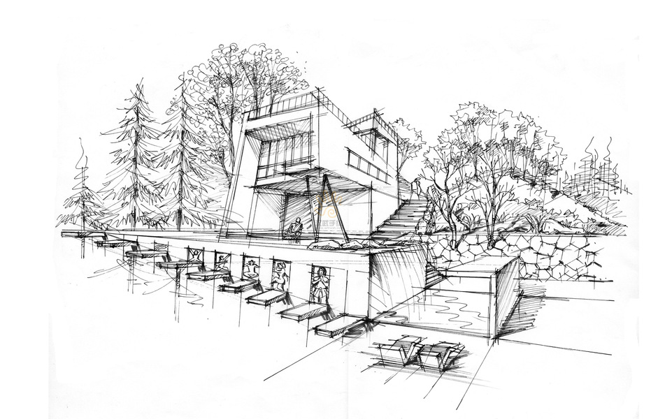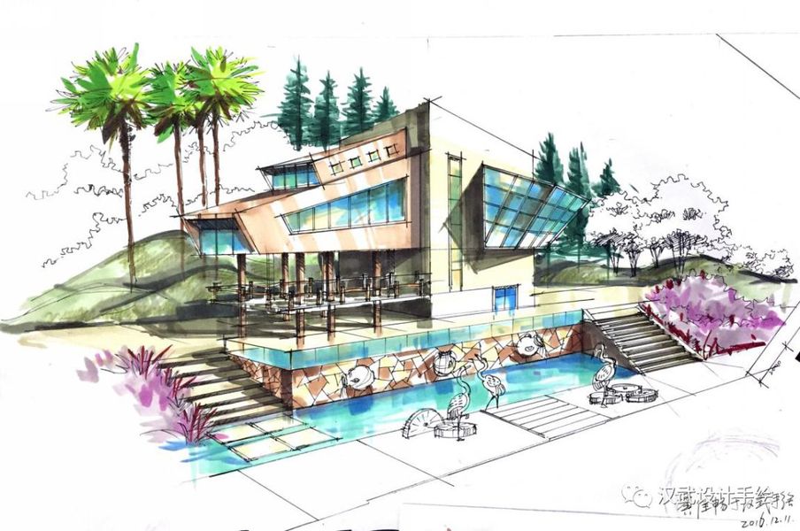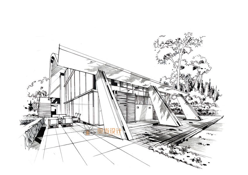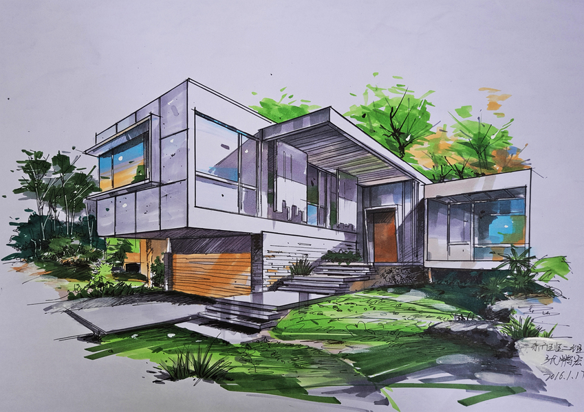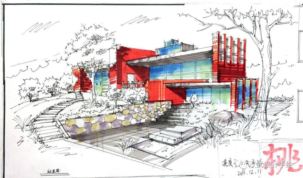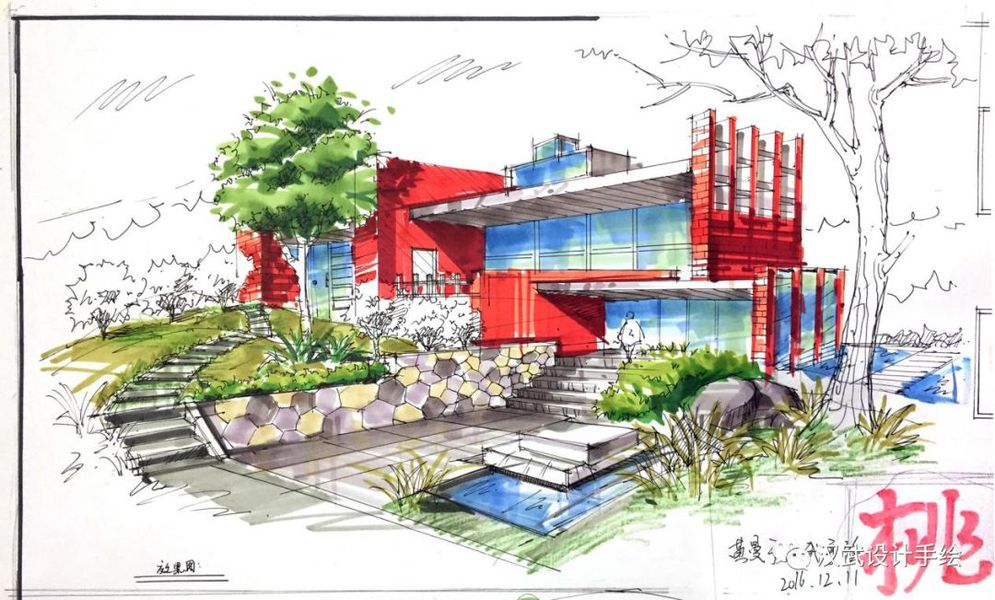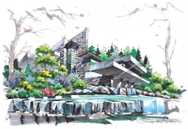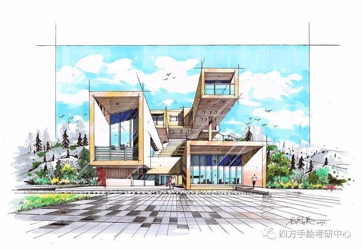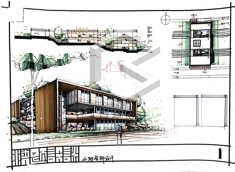 茶室—咖啡厅建筑外观设计马克笔手绘