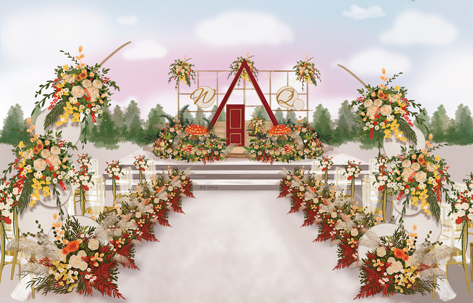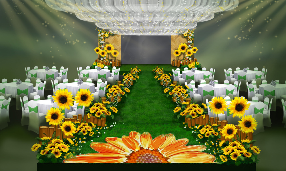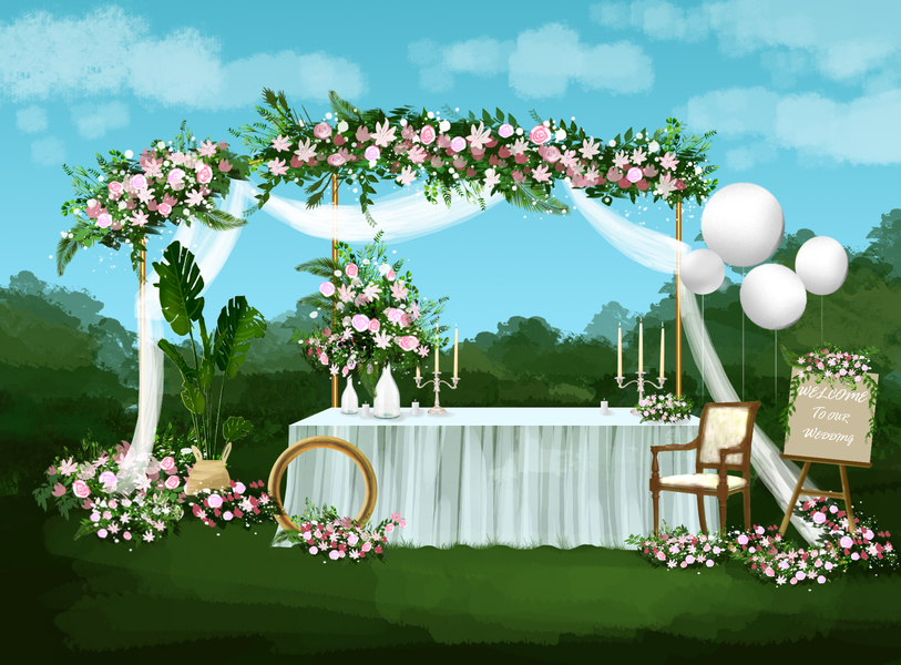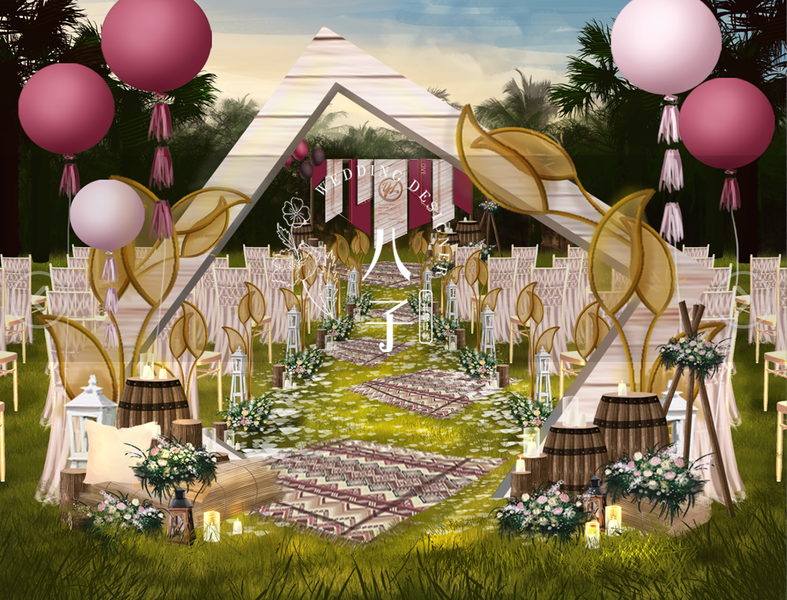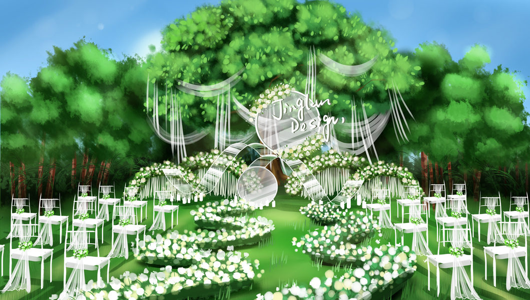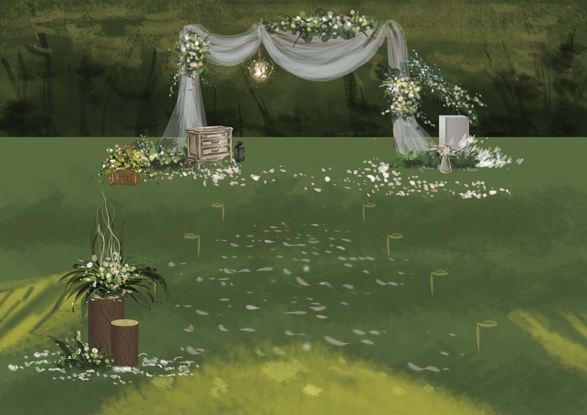 【教程】丨户外草坪“喜晴”婚礼效果图3分钟